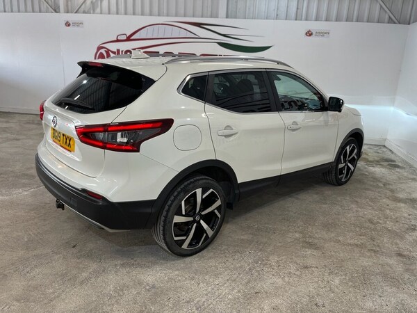Stunning, WHITE, well maintained, Nissan Qashqai 1.5 DCi TEKNA 5 door. This car will be supplied with two keys and as Full Service History with services completed at 12, 28, 38, 44 and 55 thousand miles. This c ar comes with a fantastic specification including Alloy wheels, Privacy glass, BOSE sound, Sat Nav, Panoramic sunroof, 360 camera and Reverse camera, Half leather seats with heated front seats, Climate control, Cruise control, Bluetooth, Remote central locking and Electric folding door mirrors. All vehicles are delivered serviced, with a full 12 months clean (NO ADVISORIES) MOT. All vehicles also come with free complimentary 12 months breakdown cover. All vehicles are supplied with a FREE 6 months warranty. An upgraded, extended 12 month warranty at reasonable additional cost is also available. P/X welcome. Please check our website for our up to date stock of over 400 cars and vans, an excellent selection is always available..Alloy wheels + Privacy glass + Sat Nav, 360 degree camera + Reverse camera , Panoramic sunroof + Bluetooth + BOSE , Heated front seats + Half leather seats, Electric folding door mirrors, 19in Alloy Wheels, Body Coloured Door Mirrors, Body Coloured Handles, Chrome Glass Surround, Electric Heated Auto-Folding Door Mirrors, Front and Rear Electric Windows, Glass Roof Pack, LED Pack, Matt Silver Roof Rails, Puncture Repair Kit, Rear Roof Spoiler, 3 Height Adjustable Rear Headrests, 60-40 Split Rear Folding Seats, Ambient Lighting Centre Console, Auto Wipers, Boot Light, Carbon Graphite Dash Trim, Centre Console Storage and Armrest, Chrome Interior Door Handles, Daytime Running Lights Dip Function When Turn Signal Applied, Driver Seat Height Adjustment, Drivers Seat with Manual Lumbar Support, Dual Zone Climate Control Air Conditioning, Electrically Adjustable Drivers Seat, Executive Pack, Front and Rear Door Pockets with Drink Holders, Heat Pack, Height Adjustable Front Head Restraints, Individual Rear Seat Reading Lights, Interior Ambient Lighting, Leather D Shaped Steering Wheel, Leather Gear Lever, Leather Knee Pad, Luggage Board System, Monoform Front Seats with Plastic Backboard, One Touch 4 x Auto Windows with Illuminated Switches, Parcel Shelf - Stow Function Under Luggage Board, Passengers Seat with Manual Lumbar Support, Pollen Filter, Remote Audio Control, Seats - Passengers Height Adjustment, Start Push Button, Steering Wheel Mounted Audio Controls, Synthetic Leather Wrapped Door Handle with Contrasting Stitching, Tech Pack, Tilt and Telescopic Adjustable Steering Wheel, AM-FM-CD Audio System with DAB, AUX Socket for MP3 Player, Advanced Drive Assist Display - 5in TFT Coloured Screen, Bluetooth with Audio Streaming, Bose 8 Speaker Premium Audio System, Drive Assist Pack, Electric Speed-Sensitive Power Steering, Front 12v Power Sockets x2, Front Fog Lights, Intelligent Auto Headlight, LED Signature Daytime Running Lights, Nissan Chassis Controls, Nissan Connect 7in Touchscreen Navigation and Entertainment System, Rear USB Port, Smartphone App Integration, USB Port, Underbody Vortex Generators, AutoHold Function - Stand Still Assist, Cruise Control with Speed Limiter, Driver-Passenger-Side and Curtain Airbags, ESP ABS EBD and Brake Assist, Electric Parking Brake, Front and Rear Seat Belts with Load Limiter and Pretensioners, Front and Rear Seatbelt Warning, Height Adjustable Front Seatbelts, Hill Start Assist, ISOFIX Child Seat Anchoring Points - Rea