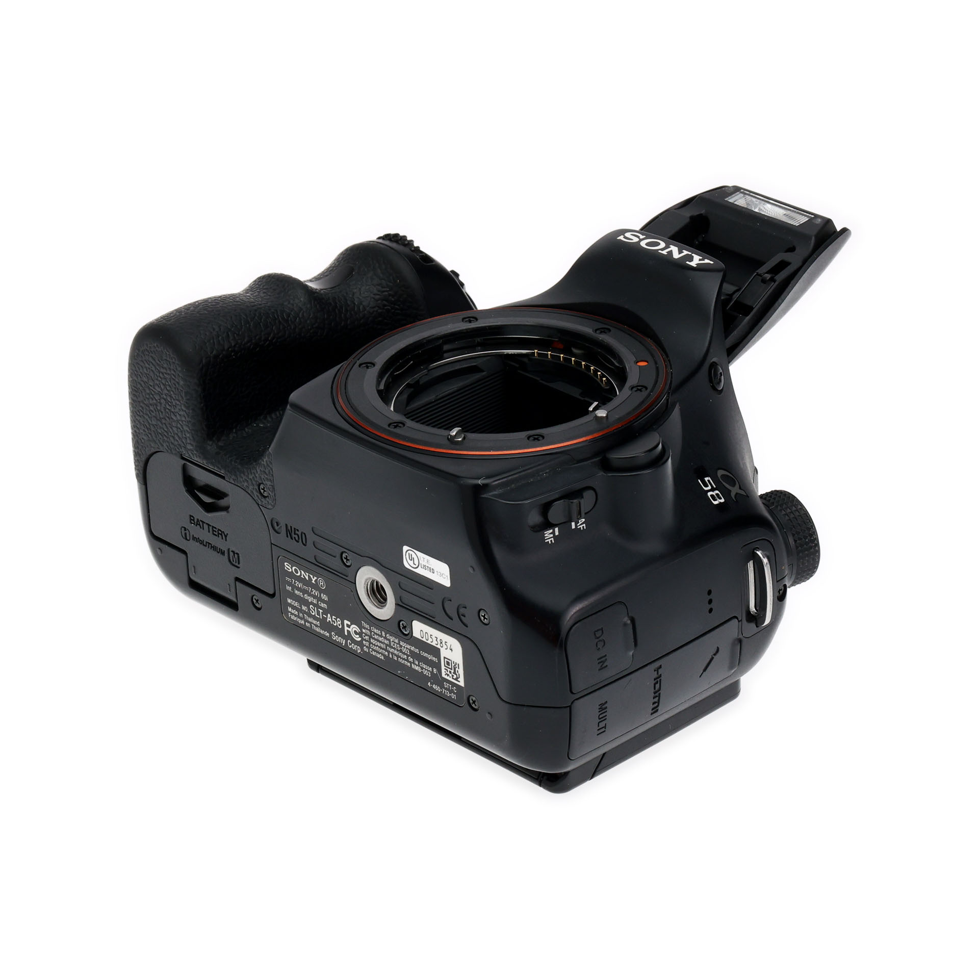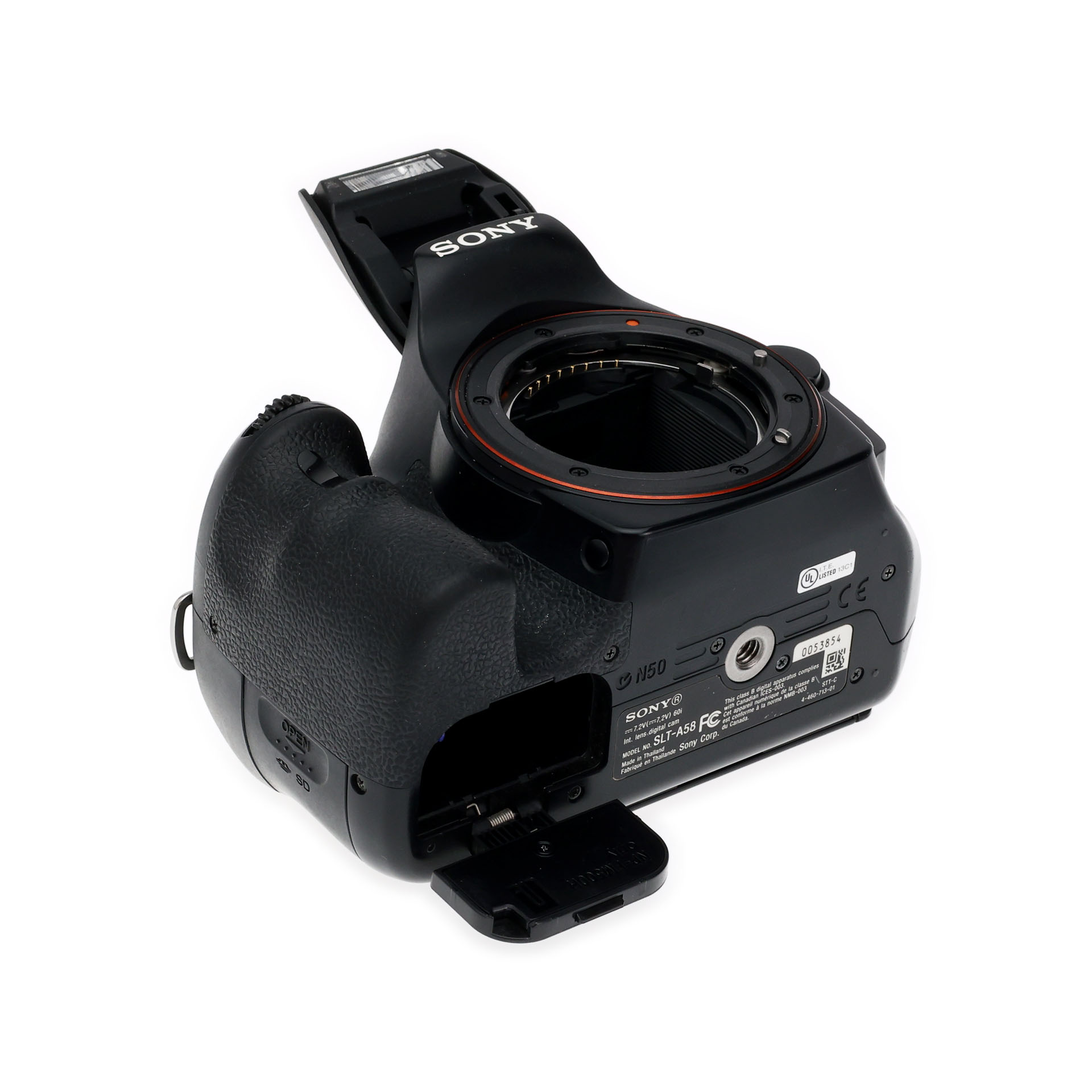 AS-IS Sony Alpha SLT-A58 20MP Digital SLT DSLR Camera Body Black No IBIS Used Condition: AS-IS - As is Photos are of the item you will receive. Only photographed items and accessories are included. FR663