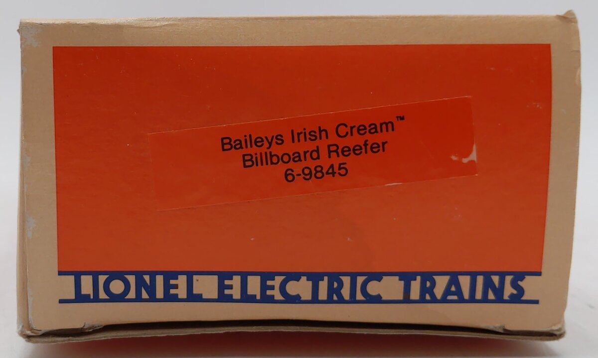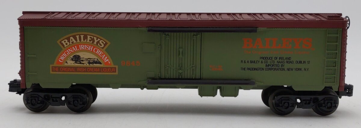 Here is a Lionel 6-9845 O Gauge Baileys Irish Cream Billboard Reefer Car. This is one of the Famous Spirit billboard liquor cars manufactured in the mid eighties by Lionel. This one was released in 1986 and features sliding doors and operating couplers. Baileys is the most sought after in the series.