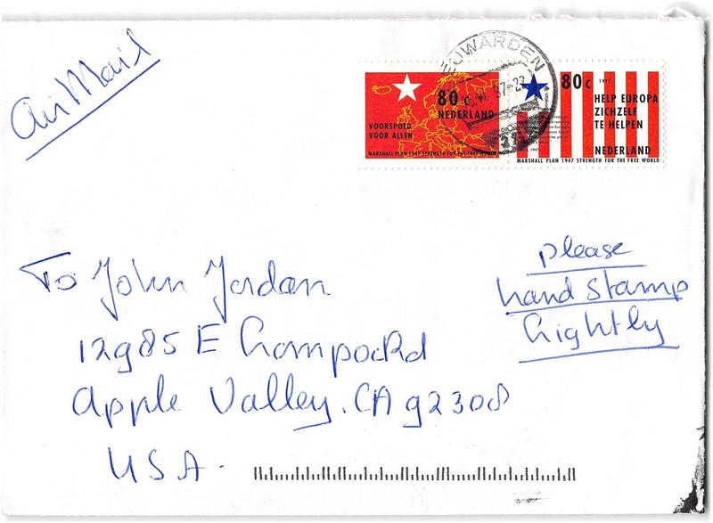 | Netherlands to Apple Valley CA, 1997 |