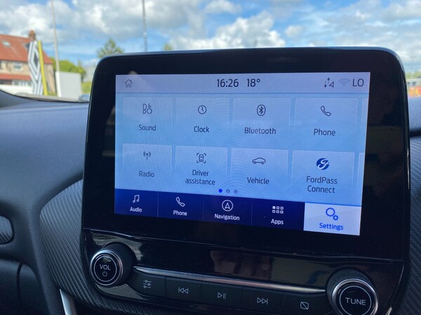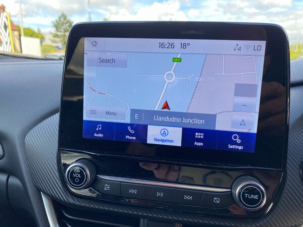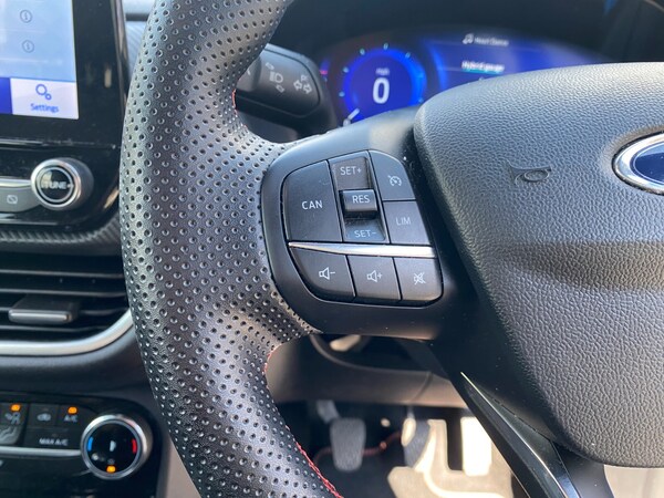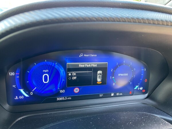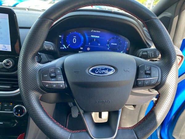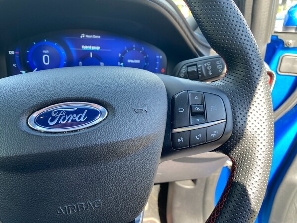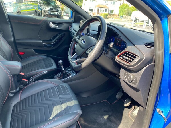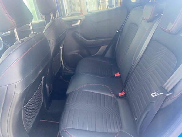 ..Driver impairment monitor, Emergency call service, Ford easy fuel, Full digital 12.3'' instrument cluster, Lane keeping aid with lane departure warning, Power assist steering, Power start button, Rear parking sensor, Selectable drive modes(Normal, sport, Eco, trail, slippery), Speed sign recognition, Sport suspension, Automatic headlights with auto high beam, Automatic rain sensing wipers, Front fog lamps, LED daytime running lights, LED rear lamps, Power foldable heated door mirrors with puddle lamps, Privacy glass to side rear windows and tailgate glass, Quickclear heated windscreen, Rear side wing doors, Rear wiper, ST-Line body styling kit with unique grille and large body colour rear spoiler, Third brake light, 3 seat bench in 2nd row, Centre console with armrest and stowage, Ford megabox extended bootspace, Front and rear head restraints, Front floor mats, Manual 4 way driver seat adjust with lumbar adjustment, Manual 4 way passenger seat with lumbar seat adjustment, Sensico partial premium upholstery, Single front passenger seat, ST-Line flat bottomed sensico leather steering wheel with leather handbrake and aluminium gear knob, Wireless charging pad with electronic air temperature control (EATC), B&O Premium Audio system + Ford SYNC 3 navigation pack - Puma, 3 rear seatbelts, Child safety lock, Electronic stability control (ESC) and hill start assist, Pedestrian/cyclist detection & post-collision braking, Pre collision assist system, Tyre pressure monitoring system (TPMS), Thatcham alarm, Carbon look interior deco spears