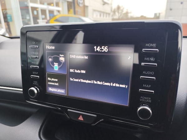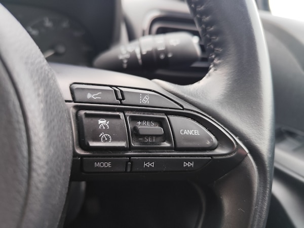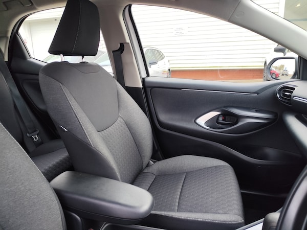 ..4.2'' coloured TFT multi information display with analogue speedometer, Adaptive cruise control, Adjustable speed limit with speed warning, Bluetooth connectivity, E-call, Electric power steering, Hybrid energy display, Multi information display switches on steering wheel, Reversing camera, Smartphone integration with Apple CarPlay and Android auto, Tailgate, Voice recognition, Vehicle Stability Control (VSC), 4 speakers, 7'' Multimedia display touch screen, Toyota Touch 2 with DAB, USB connection, Acoustic windscreen glass, Auto windscreen wipers, Automatic headlights, Body coloured door mirrors, Bulb indicators, Chequered front grille, Daytime running lights, Electric adjustable heated door mirrors, Follow me home headlights, Front auto power windows with anti jam protection, Halogen projector headlights, LED High mounted stop lamp, Manual headlight levelling, Rain sensor, Rear side wing doors, Rear spoiler, Rear wiper, Shark fin antenna, Turning signal integrated indicators in door mirrors, Variable front intermittent wipers, 3 adjustable rear headrests, 3 spoke leather steering wheel, 60/40 split folding rear seat, Active headrests, Adjustable boot height, Auto air conditioning, Coat hooks in rear grab handles, Cup holders (2 front & door), Data Communication Module (DCM) connected services, Fabric upholstery, Front armrest, Glovebox, Grey roof lining, Height adjustable driver's seat, Isofix seat fixing, Leather gearshift, Pollen filter, Shopping bag hooks, Single front passenger seat, Tilt/telescopic steering column, 3 point seatbelts on all rear seats, ABS+EBD+Brake assist, Electronic parking brake, Emergency brake light system (EBS), Front passenger airbag on/off switch, Front seatbelt reminder, Hill start assist control (HAC), Rear child proof door locks, Rear seat belt reminder, Supplemental Restraint System (SRS) 8 airbags: Driver & passenger's airbags, dual side curtain airbags, side impact airbags, front centre airbag, Toyota Safety Sense 2, Precollison + Night time Pedestrian & Cyclist Detection, Lane Trace Assist, Auto High Beam, Intelligent ACC & Road Sign Assist, Tyre pressure warning system, 2x Master key, Alarm/immobiliser, Remote powered central double locking doors, Soft touch instrument panel, Space saver spare wheel