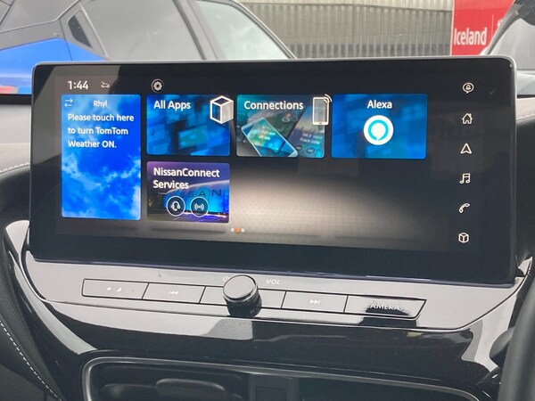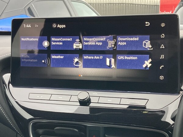 ..12.3'' full colour TFT screen combimeter, Drive modes select (Eco, normal and sport), Emergency and breakdown call, Front parking sensor, Idle start/stop system, Intelligent driver alert system, Intelligent lane intervention, Lane departure warning system, Nissan connect 12.3'' touch screen entertainment system, Nissan connect nav with TomTom traffic, Nissan connect services, Outside temperature sensor, Power Steering, Rear parking sensor, Stop/start button, Traffic sign recognition, Trip computer, Voice recognition, WiFi connectivity, Wireless Apple CarPlay and Google Android auto, Wireless Smartphone charger, 10 Bose speakers 6 speakers and 2 headrest speakers for driver/passenger seats, 2 X Rear console USB port, Bluetooth system, USB, Aux-in and 12V socket, Bose personal sound stage control, DAB Digital radio, Auto dimming frameless rear view mirror, Automatic hazard signal with emergency stop signal, Body colour door handles, Electrically adjustable door mirrors with integrated indicators, Follow me home headlights, Front and rear electric window with one touch driver window, Heated and auto folding door mirrors, High beam assist, LED 3rd brake light, LED daytime running lights, LED front fog lights, LED headlamps, LED rear fog lamp, LED rear lamps, One touch passenger window, Rain sensor windscreen wipers, Rear privacy glass, Rear side wing doors, Rear wiper, Roof spoiler, Shark fin roof antenna in solid Black, Three blink turn signal, 3 height adjustable rear headrests, 3 seat bench in 2nd row, 60/40 split folding rear seat, Automatic climate control, Card holder on driver sunvisor, Door ambient lighting, Driver seat back pocket, Driver side rear coat hanger, Driver/passenger sunvisors and vanity mirrors, Front and rear cabin lights, Front armrest, Front door pockets with bottle holders, Front head restraints, Front/rear passenger grab handles, Gear console ambient circle lighting, Height adjustable driver's seat, Internal chrome door handles, Leather gearshift knob, Luggage board, Luggage space lighting, Monoform sporty seats, Multifunction steering wheel, Passenger seat back pocket, Rear door bottle holders, Single front passenger seat, Smooth synthetic leather steering wheel, Synthetic leather kneepad, Synthetic leather upholstery, Telescopic steering wheel adjustment, Two cupholders in front centre console, Two rear isofix child seat anchorage points with top tether, Welcome light and console tray ambient lighting, Advanced safety shield pack