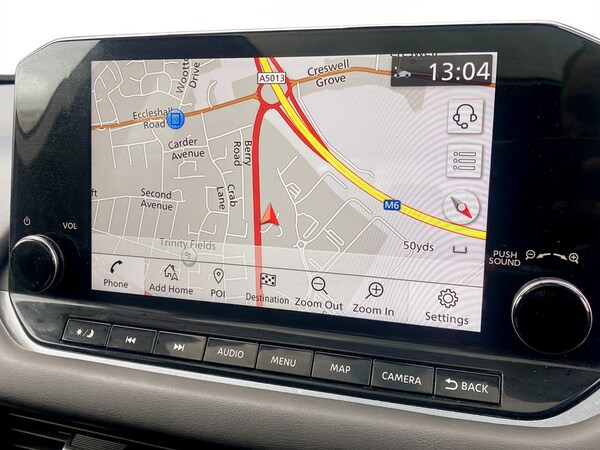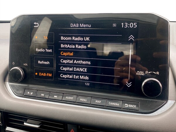 ..Blind spot warning, Drive modes (sport, normal, eco), Electric speed sensitive power steering, Emergency and breakdown call, Front and rear parking sensors, Full Digital 12.3'' TFT Digital Combimeter, Google maps services - search, weather, 3D maps and Google street view, Idle stop/start system, Intelligent around view monitor, Intelligent Cruise control (ICC), Intelligent driver alert system, Intelligent forward collision warning, Intelligent lane intervention, Lane departure prevention, Lane departure warning system, Maximum speed limiter, Moving object detection, Nissan connect 12.3 inch touchscreen infotainment system, Nissan connect navigation, Push button starter, Rear cross traffic alert, Remote control services - door locks, lights, horn and car locator, Telematics - notifications and connectivity services, TomTom live traffic services, Traffic sign recognition with legal speed adjustment, Trip computer, Virtual personal assistant and firmware over the air capability, Wireless Apple CarPlay and wired Android Auto, 6 speakers, AM/FM audio system with DAB, Bluetooth audio streaming, Front USB connections (Type-A and Type-C), Rear USB charging only ports (Type-A and Type-C), Auto dimming rear view mirror, Auto rear wiper when reversing, Automatic hazard signal with emergency stop signal, Body colour mirror caps, Body coloured door handles, Bodyside mouldings, Chrome side window finisher, Door handle with button, Dusk sensor, Electric auto folding door mirrors, Electrically adjustable and heated door mirrors with LED turn indicator, Follow me home headlights, High beam assist, Intelligent auto headlights, LED daytime running lights, LED Headlights, LED rear lights, One touch front and rear electric windows with remote opening and closing, Partially body coloured bumpers, Privacy glass, Rain sensor, Rear bumper with graphite insert, Rear reversing light (bulb lighting), Rear roof spoiler, Rear side wing doors, Rear styling plate, Shark fin antenna, Splash free rain sensing wipers, Super UV and infrared cut glass, Three blink turn signal, 12v power socket in dashboard and luggage, 2 way electrical driver lumbar adjustment, 2x Rear coat hooks, 3 bench rear seats in 2nd row, 3 rear headrests, 4 folding assist grip, 6 Luggage hooks - 4 on floor, 2 on side, 6-way manually adjustable driver's seat, 60/40 split folding rear seat bench, Ambient lighting around centre console, Centre console storage tray, Chrome interior door handles, Cloth monoform