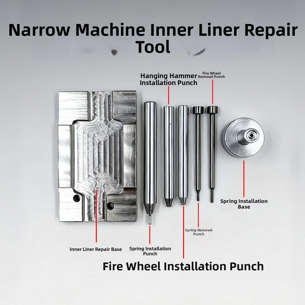 * Outils multifonctionnels : comprend des poinçons et des bases d'installation pour diverses pièces comme les roues et les leviers en silex.