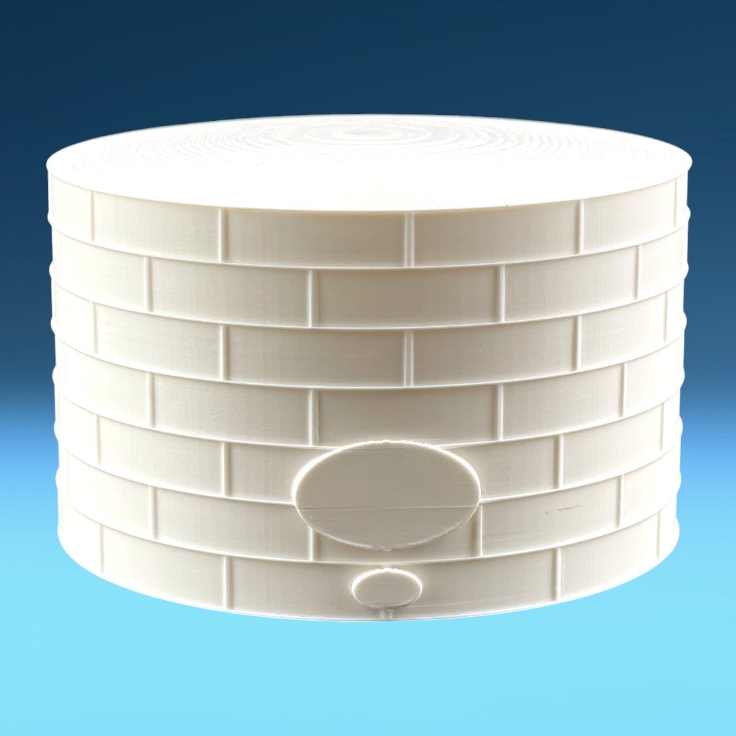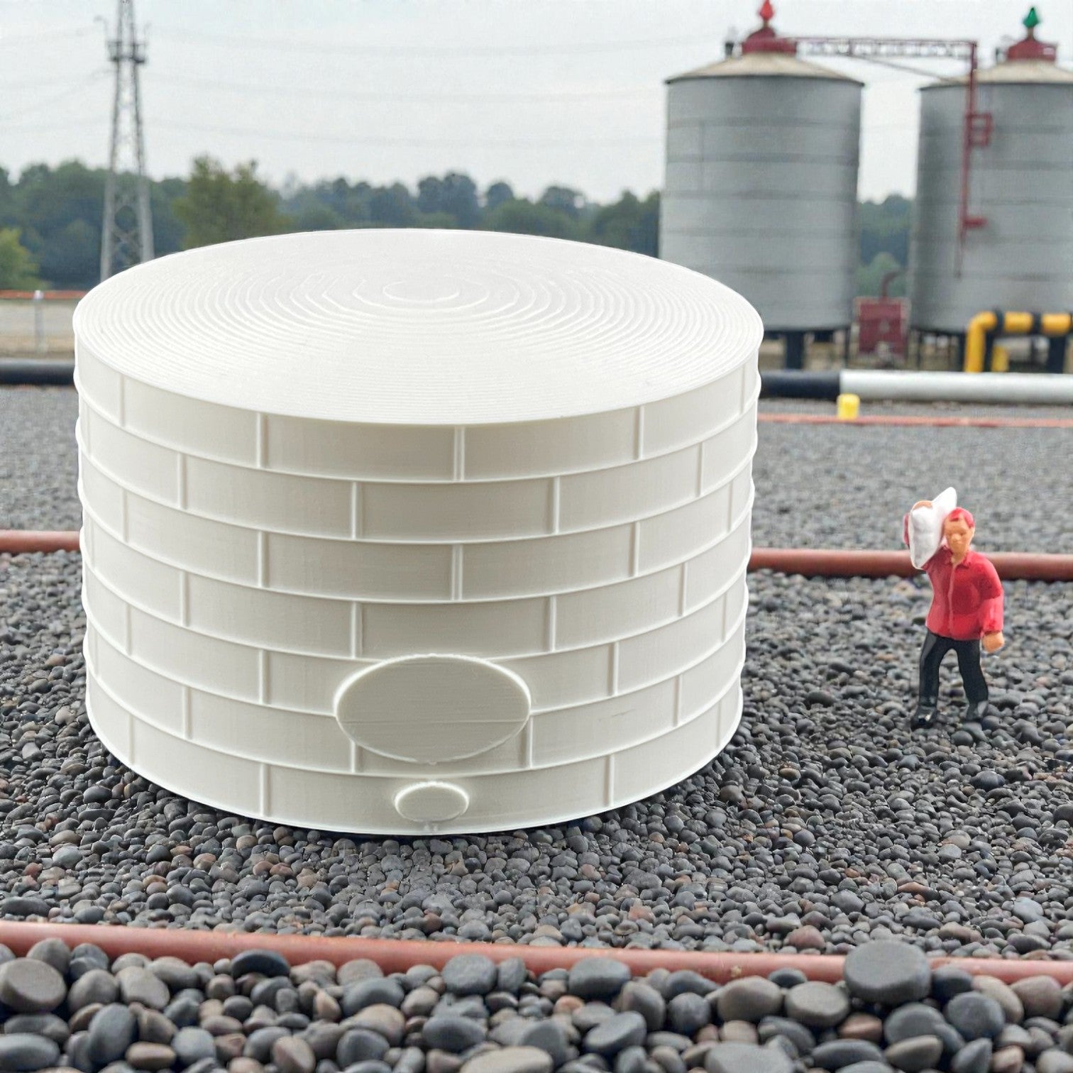 This highly detailed scale oil or fuel storage tank is modeled from real tanks currently in use at the Union Pacific Railyard in Denver, Colorado, ensuring authentic industrial realism for your layout.