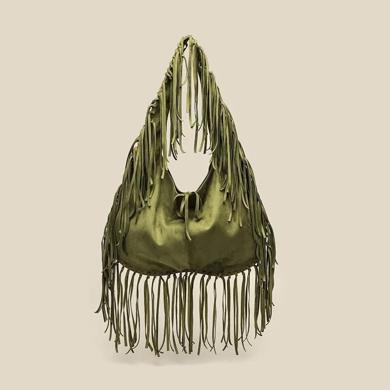 Channel effortless boho vibes with this Retro Western Tassel Shoulder Bag, a standout accessory for free spirits and trendsetters. Designed with a soft suede-style fabric and finished with dramatic fringe detailing, this crescent-shaped dumpling bag blends vintage charm with modern edge.