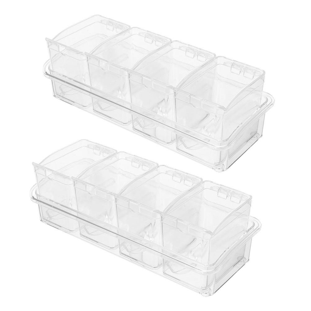 Cette boîte d'assaisonnement à quatre grilles est un outil de cuisine polyvalent qui peut vous aider à organiser à stocker une variété d'assaisonnements. Fonctionnalités - Stockez efficacement différents assaisonnements : la boîte d'assaisonnement organise stocke efficacement une variété d'assaisonnements.