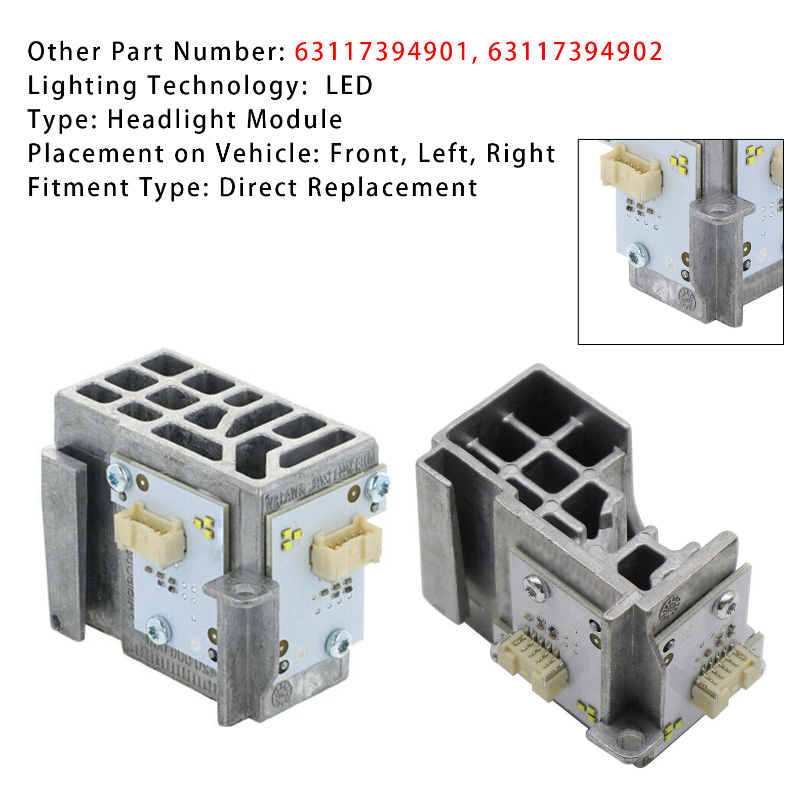 Manufacturer Part Number: 63 11 7 394 901, 63117394901,63 11 7 394 902, 63117394902