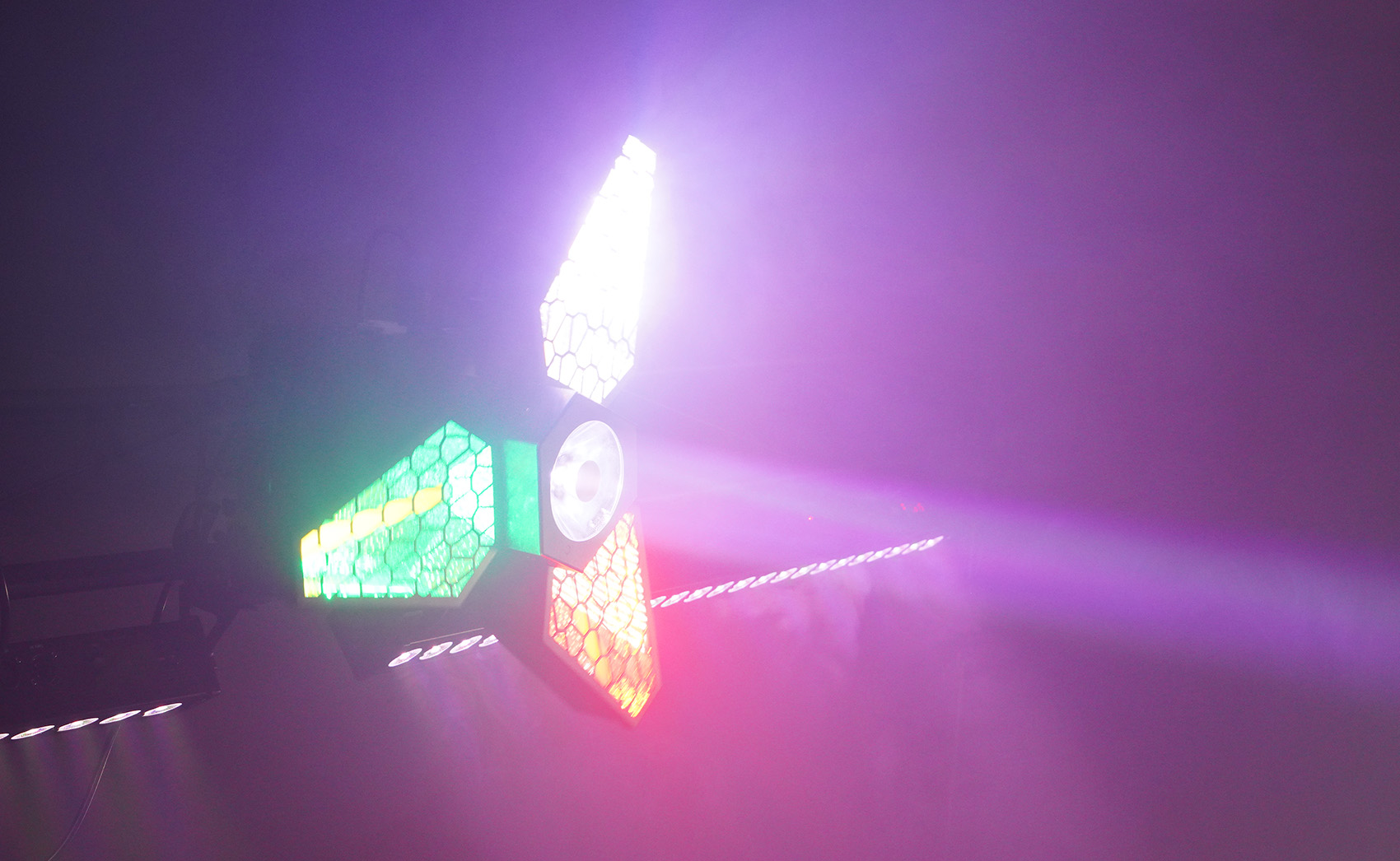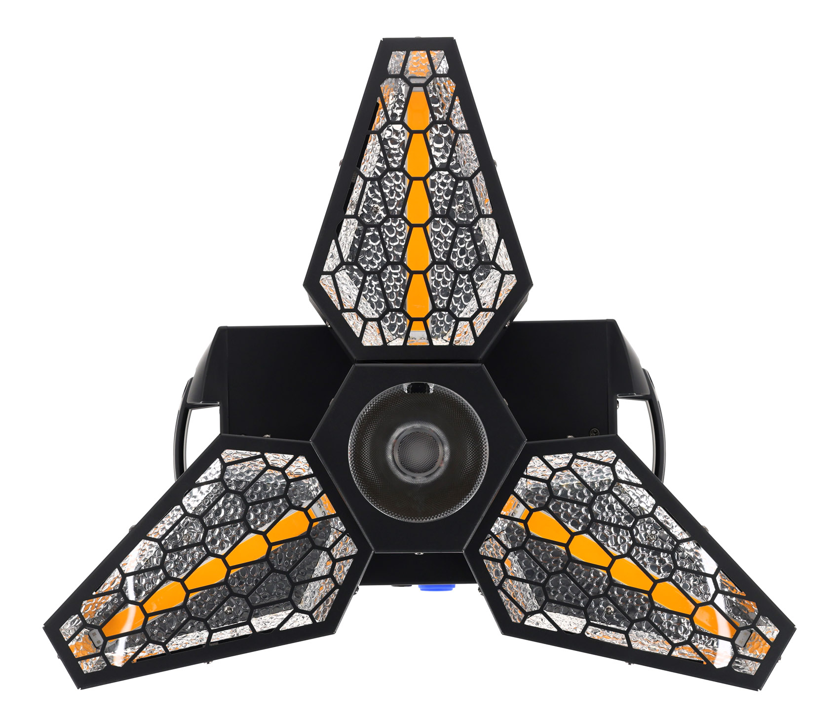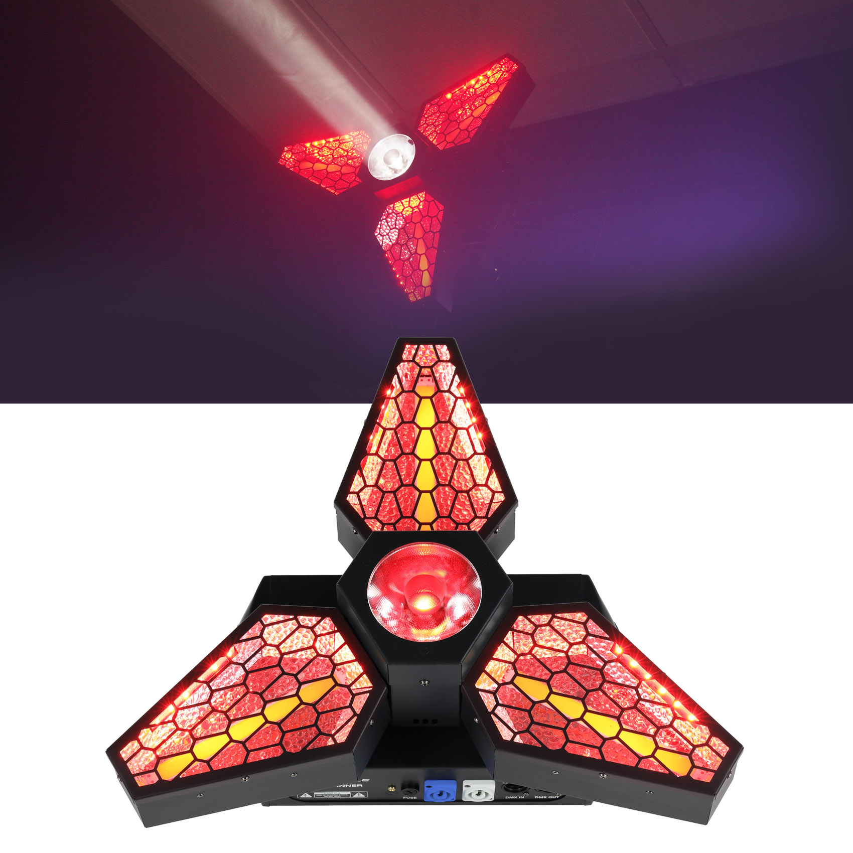 - Bright and Colorful: The LEAF SPINNER is bright enough for venues that host thousands of people! Equipped with high-brightness LEDs including 3 retro Amber LEDs at 60W each, 36 RGB LEDs at 3W each, and a central RGBW LED at 40W, ensuring your event is lit with stunning clarity and a wide array of colors.