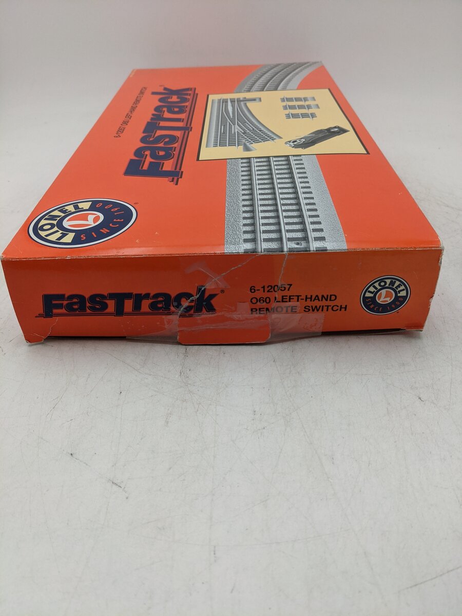 Here is a Lionel 6-12057 O60 Left Hand Remote-Control FasTrack Switch Turnout. It features an operating lighted signal lantern and a lighted remote controller with interchangeable number inserts to keep track of which controller controls which switch. Dimensions: Length: 14 1/2 inches Straight, 22 1/2-Degree turnout with one removable 1 3/8 inch extension.