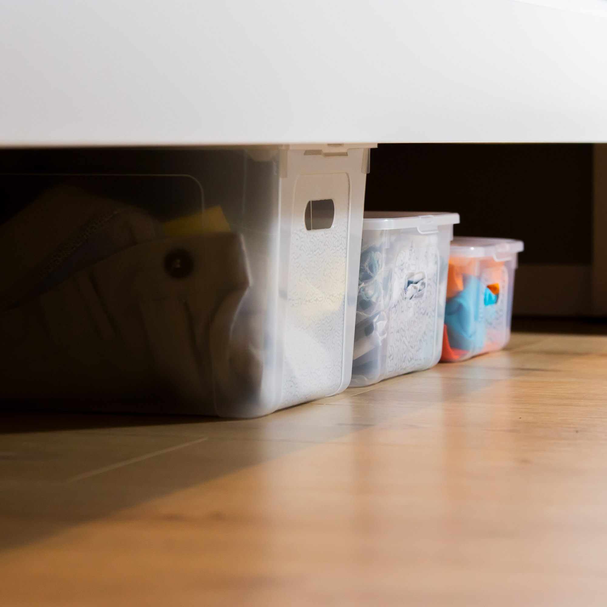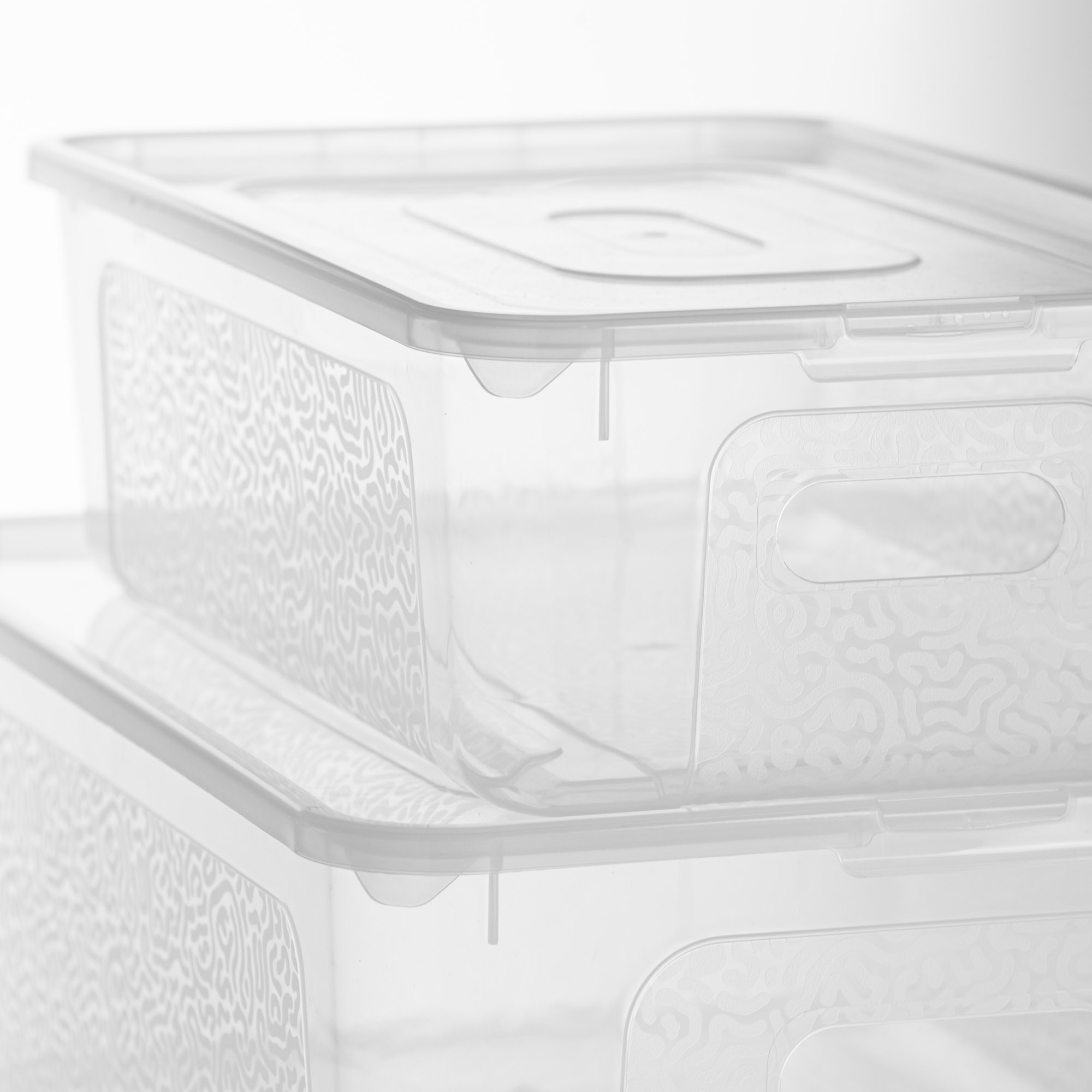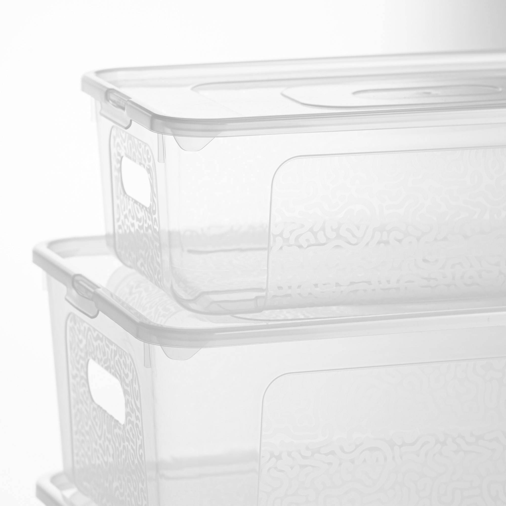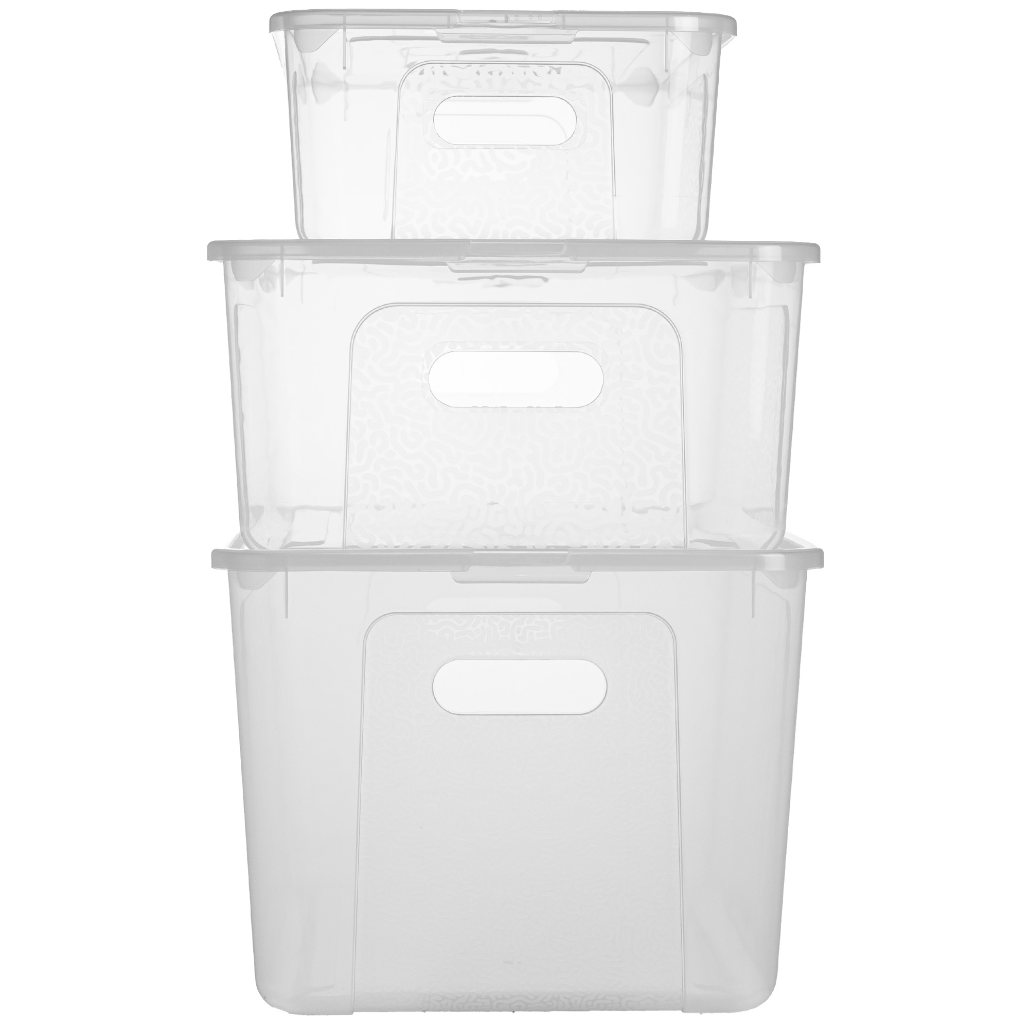 Un ensemble de trois récipients en plastique La Mutibox est le moyen idéal de mettre de l'ordre dans votre maison. A partir de maintenant Les choses ont leur propre place et vous gagnez le temps que vous cherchez dans les différents coins et angles. Les conteneurs sont en plastique durable et de haute qualité fabriqué. Ils ont une couleur transparente et un motif fin. Ainsi, vous pouvez voir immédiatement ce qu'il y a dedans.
