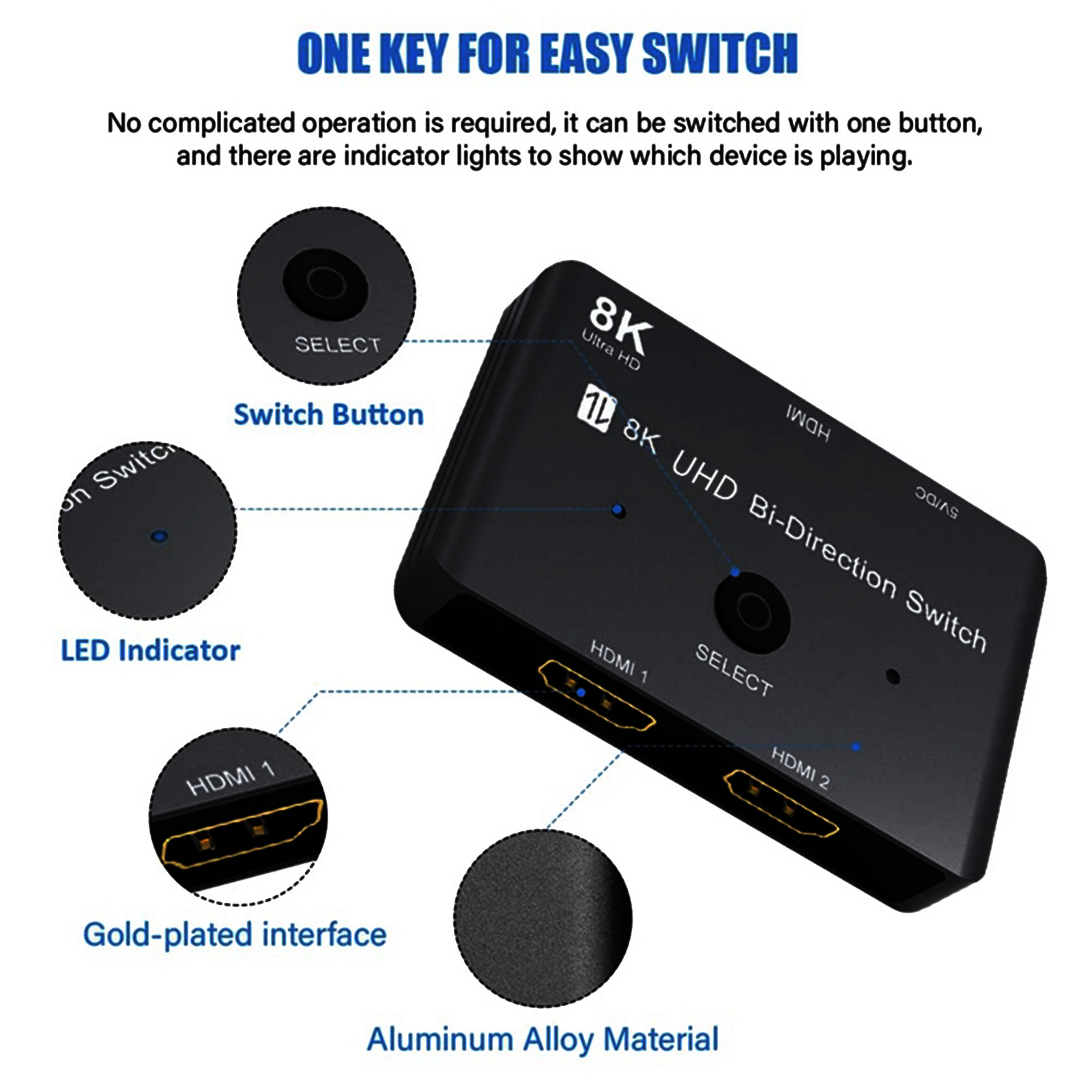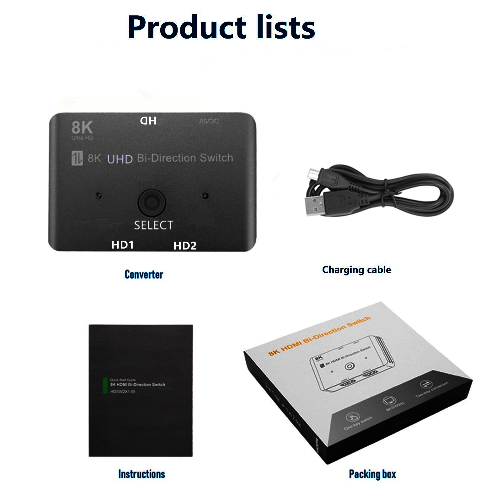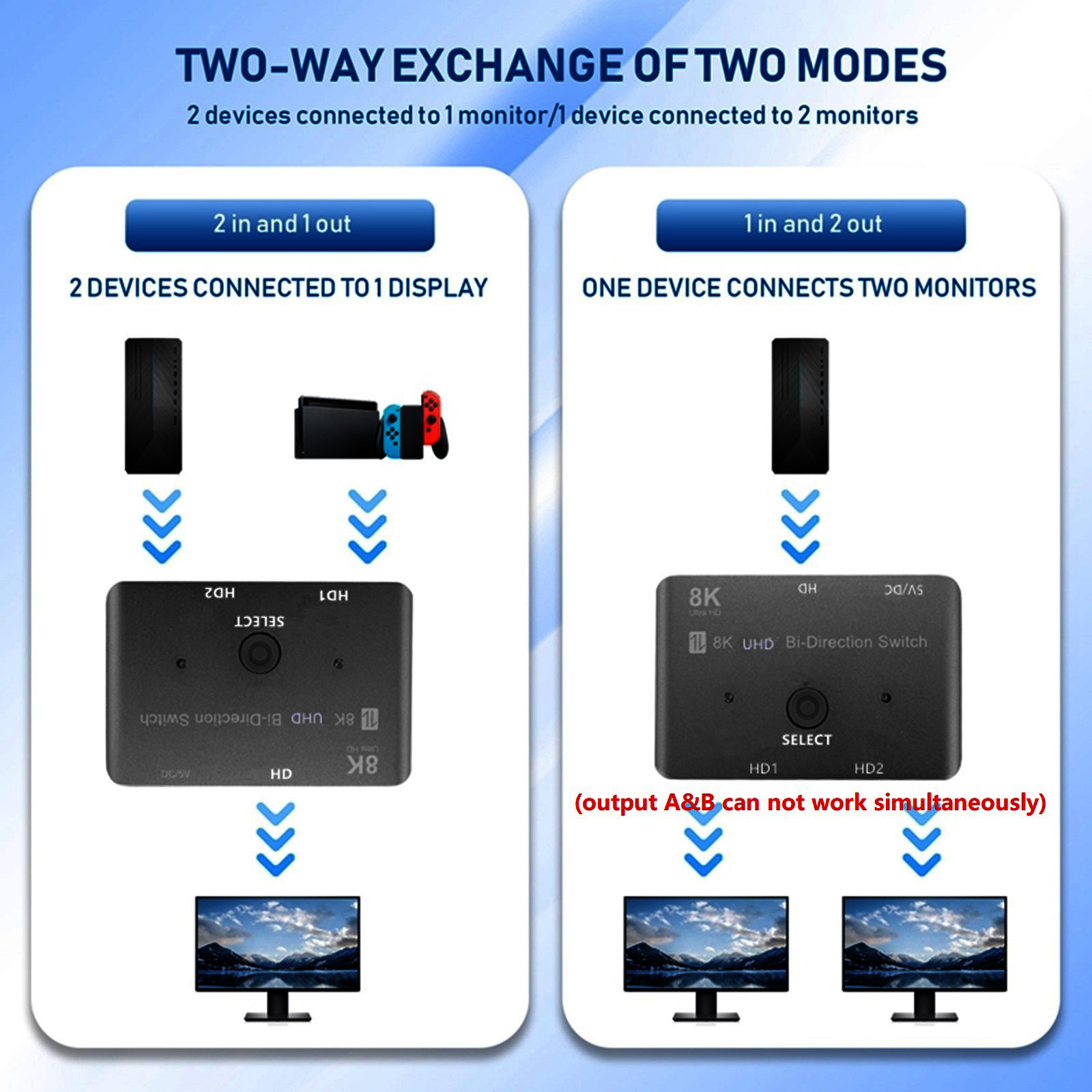1:This switcher is a bi-directional switcher,support 2 in 1 out,1 in 2 out.