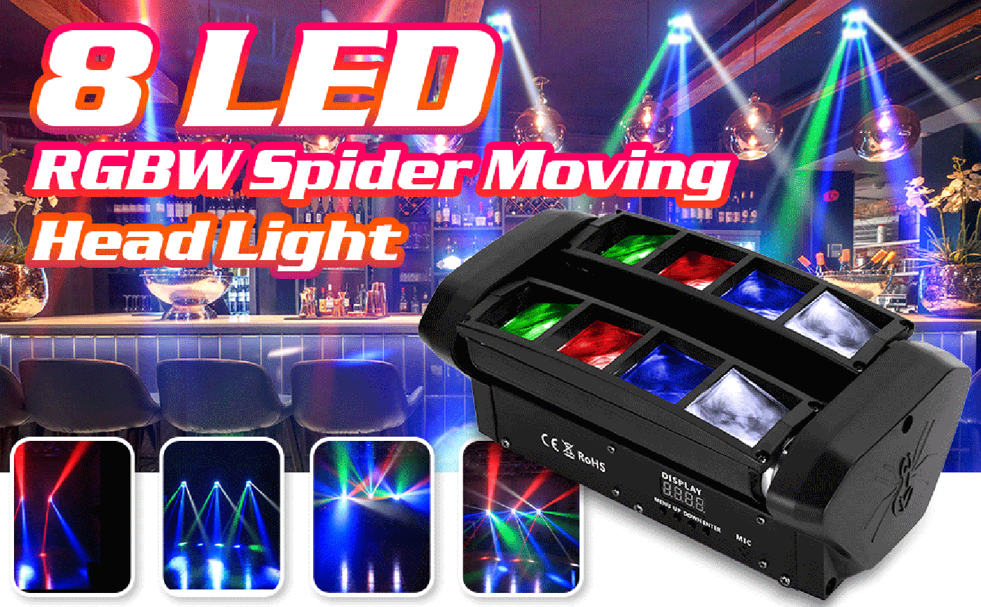 ♫【Wide Range Spider Web Beam】XY axis angle: 540 degrees, Y1: 180 degrees, Y2: 180 degrees, 8 magic beams, each beam not only creates a chasing light effect, but also continuously converts swinging. The stage light has a large projection range. With stage smoke effect, the beam effect is more prominent.