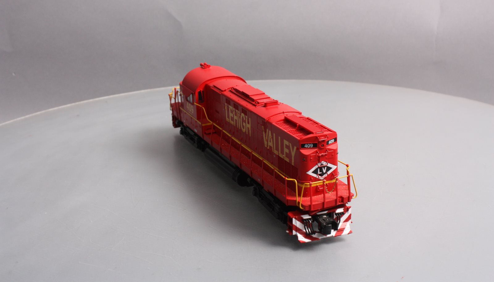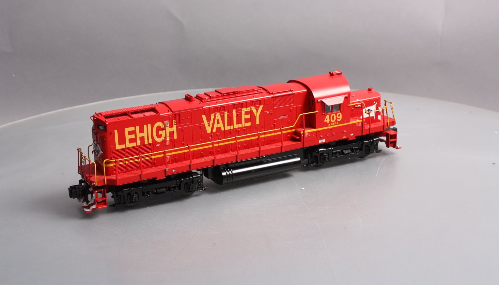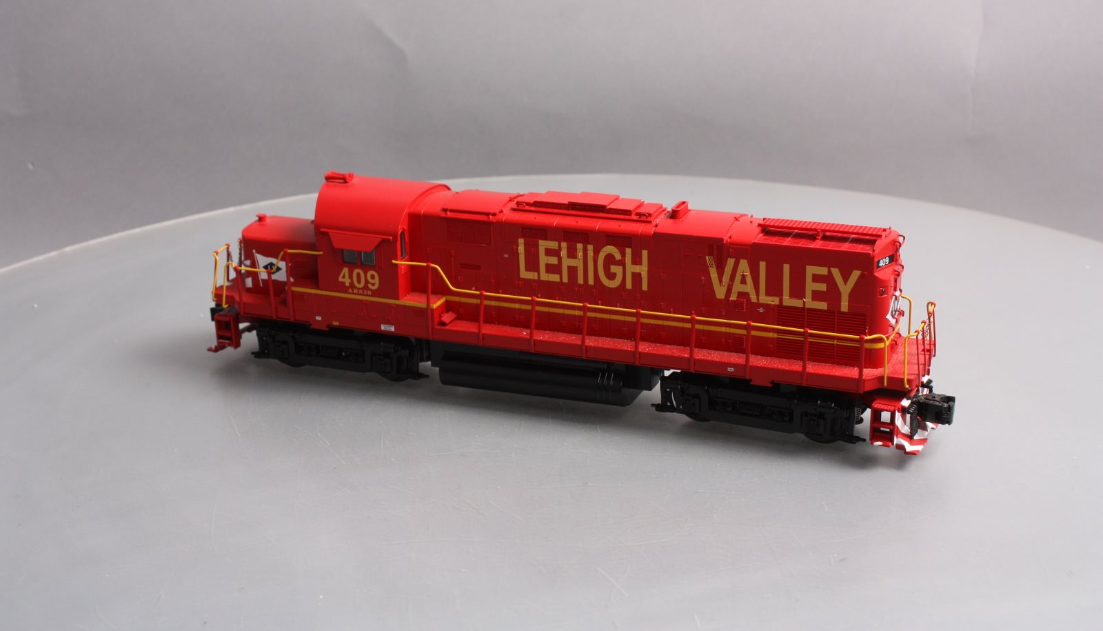 Here is a Lionel 6-18589 O Lehigh Valley C-420 Diesel Locomotive #409. This locomotive features directional lighting, a dual can motor with flywheel, is Command Equipped, and has a fan driven smoke unit. This locomotive also features traction tires, electro couplers, and die-cast trucks, fuel tank, and pilot.