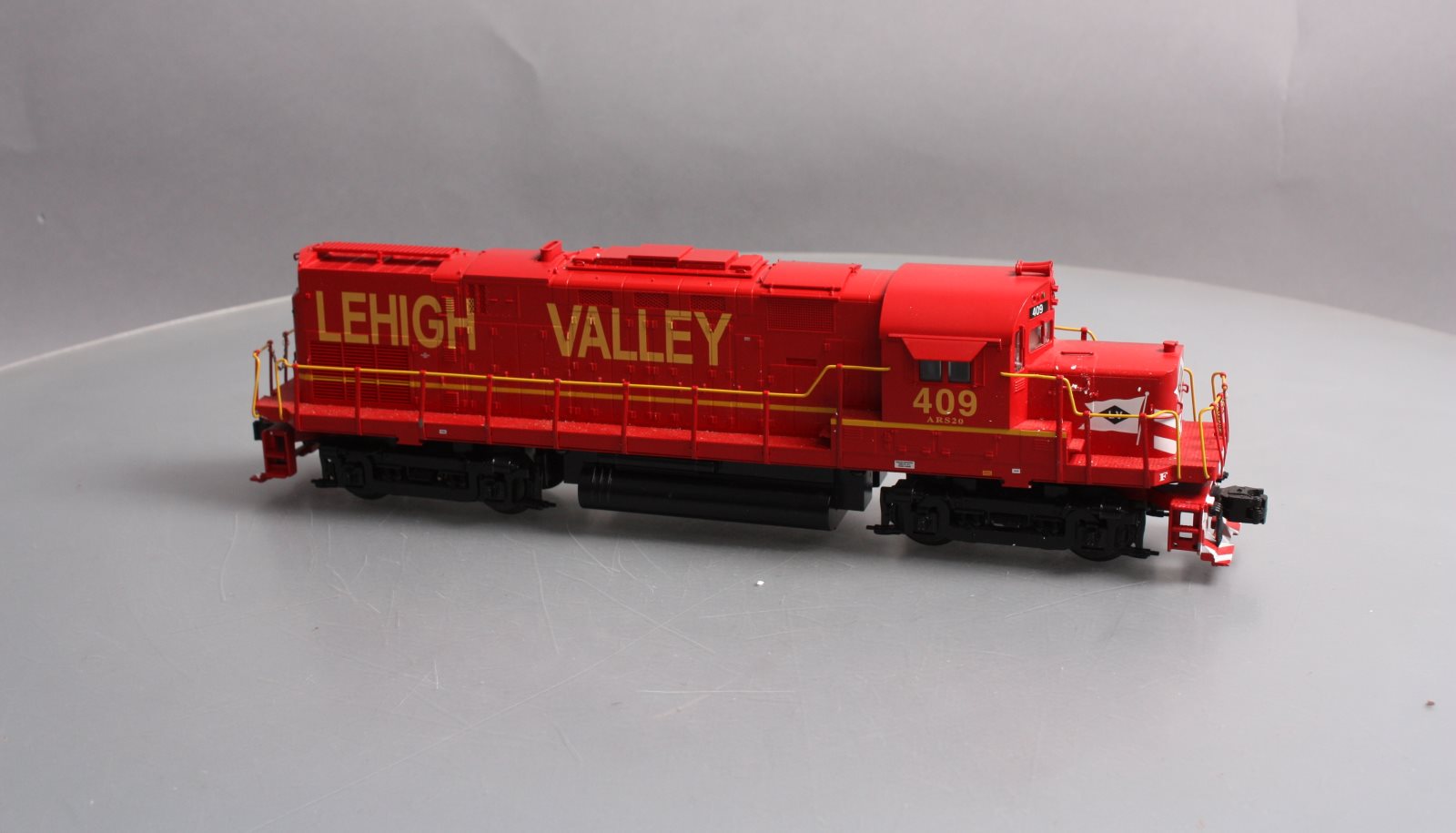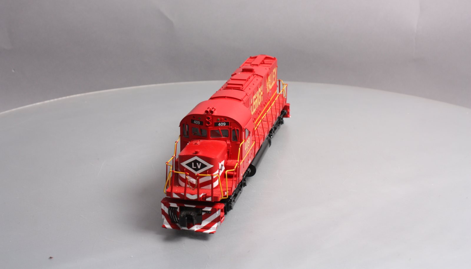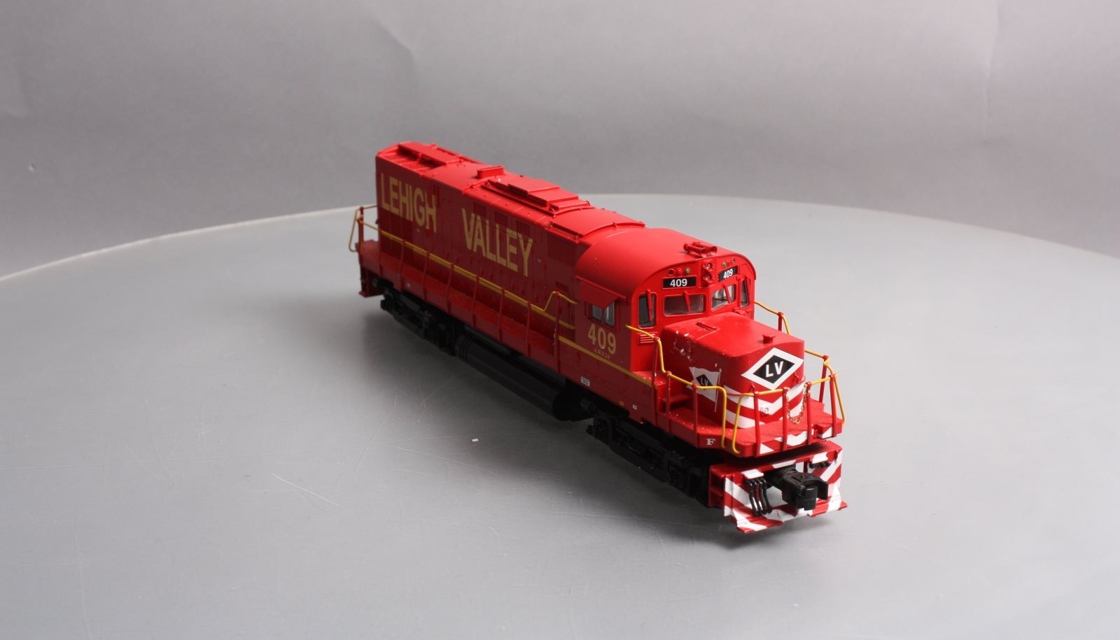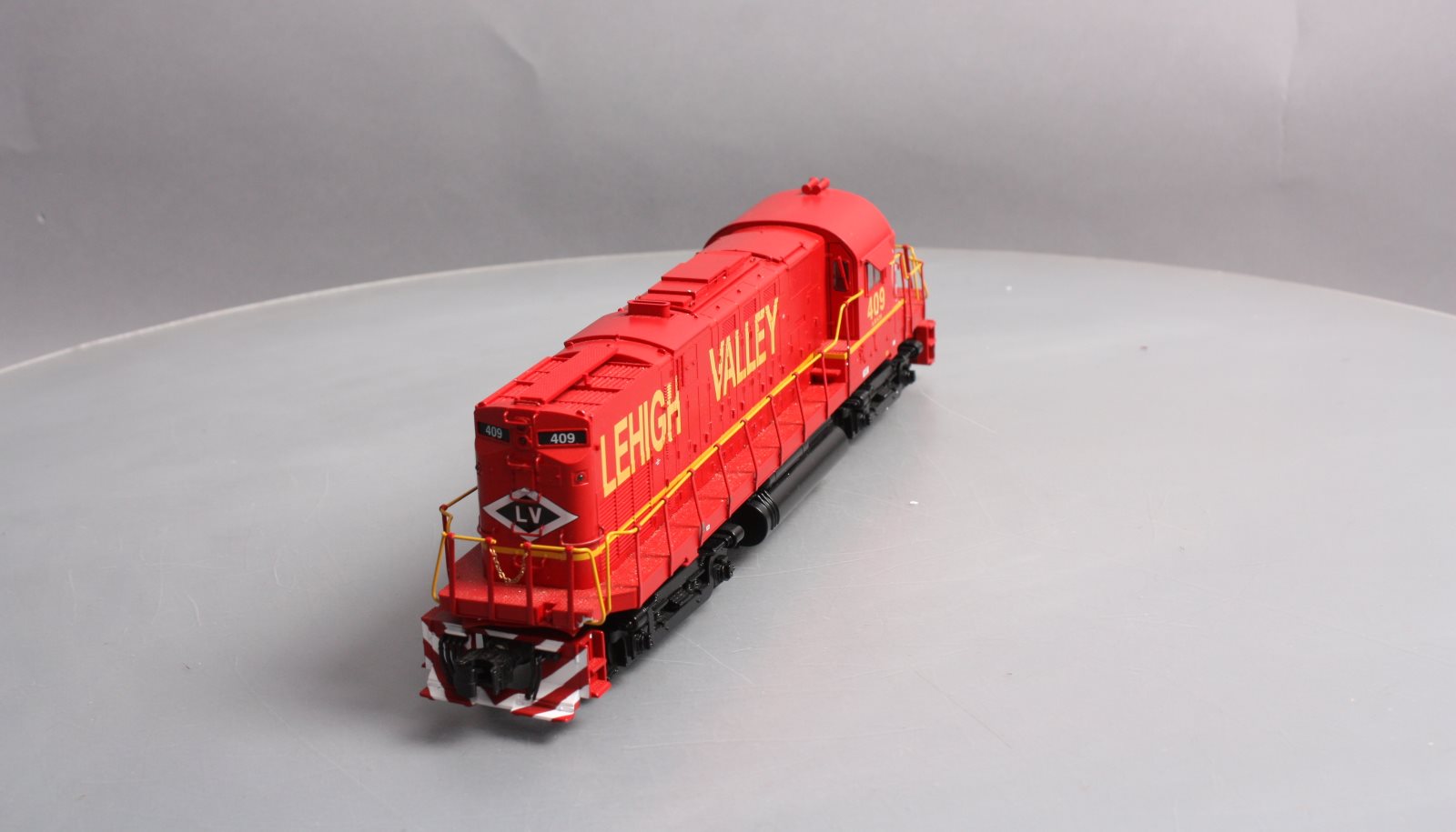 Here is a Lionel 6-18589 O Lehigh Valley C-420 Diesel Locomotive #409. This locomotive features directional lighting, a dual can motor with flywheel, is Command Equipped, and has a fan driven smoke unit. This locomotive also features traction tires, electro couplers, and die-cast trucks, fuel tank, and pilot.
