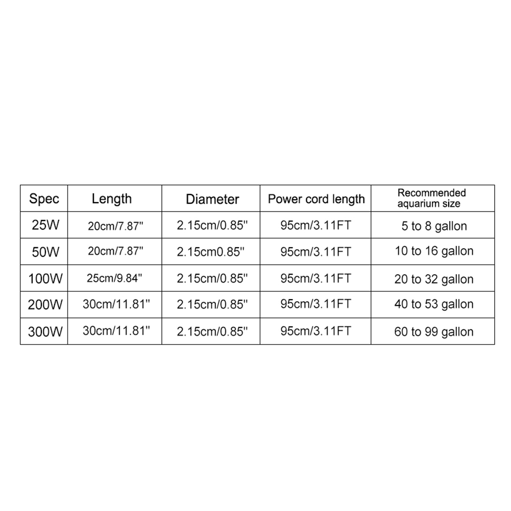 -The fully submersible heating rod with two suction cups can work in any position (horizontal or vertical) to provide the best aquarium water temperature