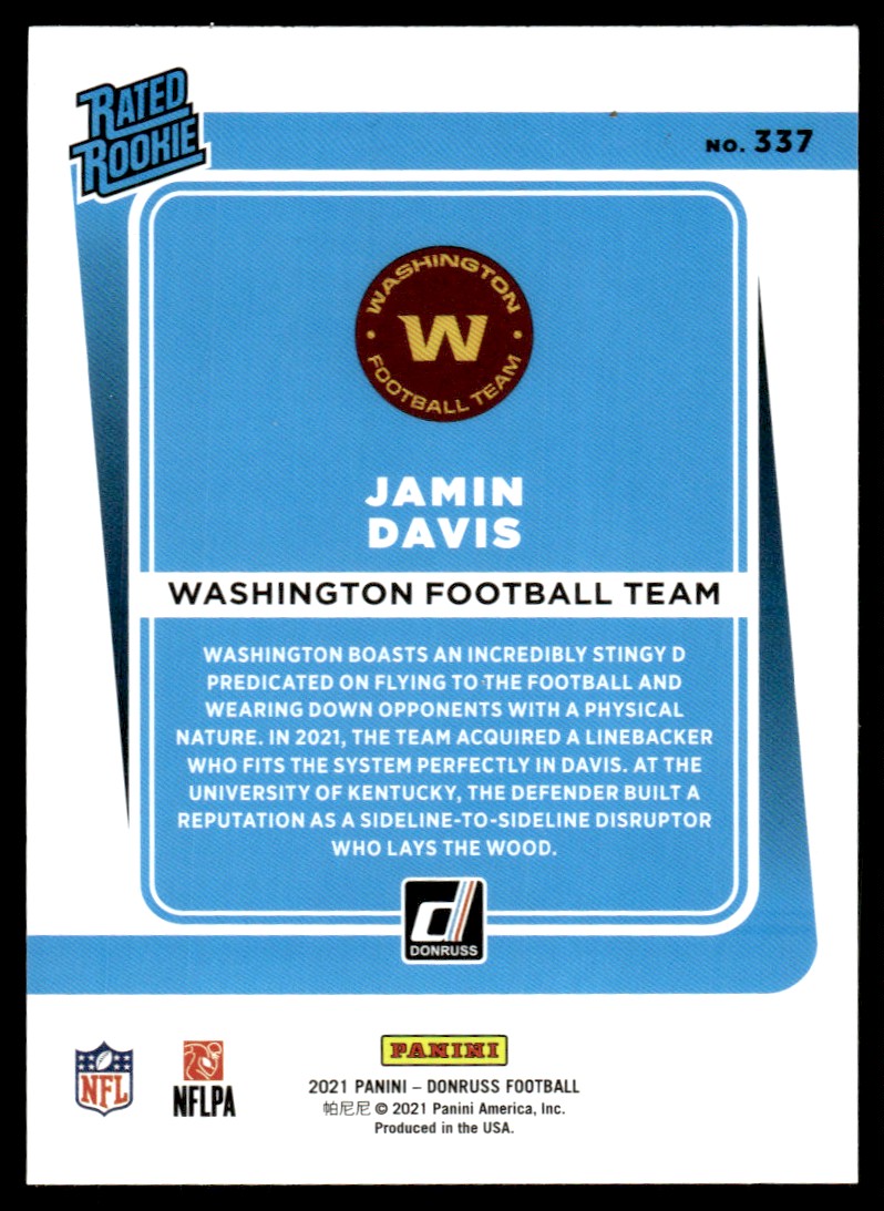 | 2021 Donruss Jamin Davis Rookie Washington Football Team #337 |