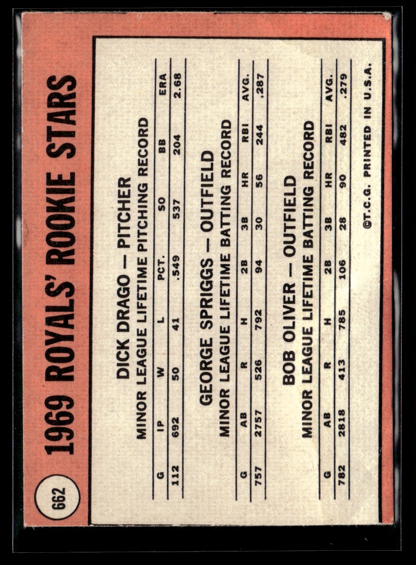 | 1969 Topps Royals Rookies - Dick Drago/George Spriggs/Bob Oliver Rookie EX Set |