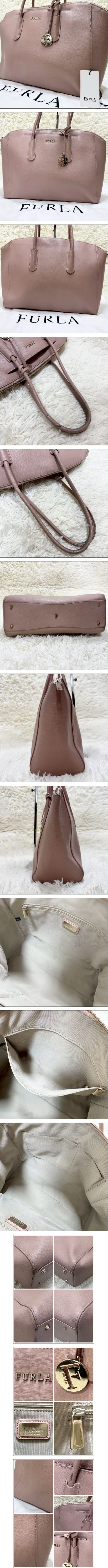 | FURLA TESSA Tote Bag Leather A4 Size Large Capacity Pink Beige USED from Japan |