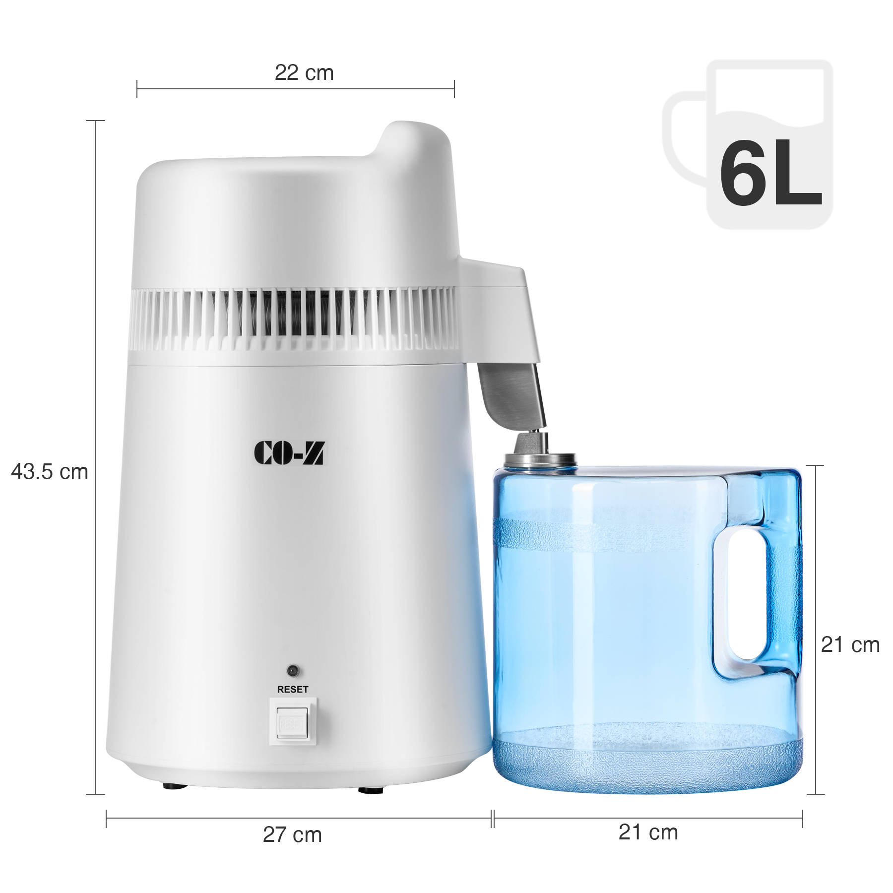 Distiller Dimensions: 22x27x43.5 cm (8.7x10.6x17.1 in.)