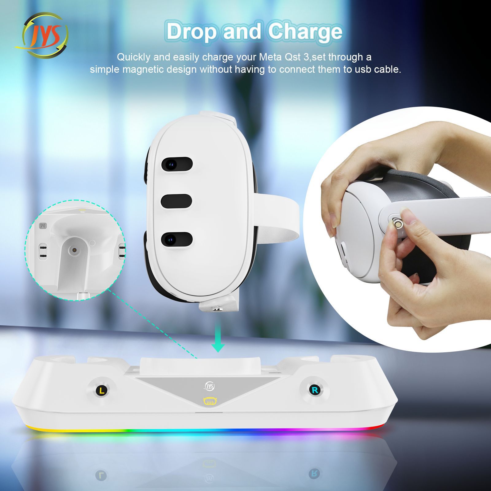 Using magnetic charging method, fast and convenient for 1 VR helmet and two VR handle grip at the same time, seat charger configuration over-voltage, overcharge, over-current, circuit protection