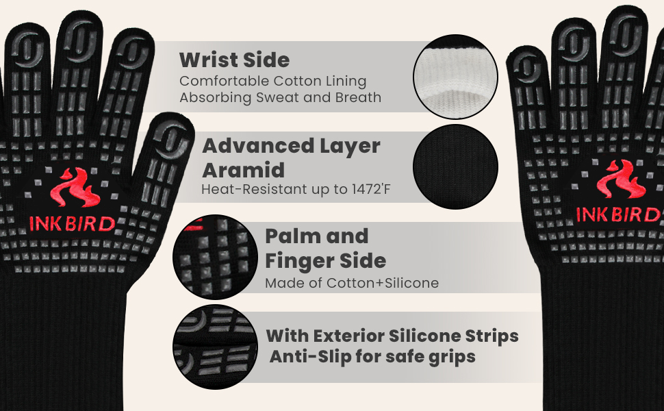 BBQ gloves are made of high-quality, heat-resistant aramid fabric and