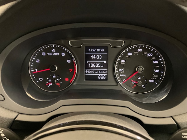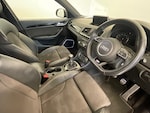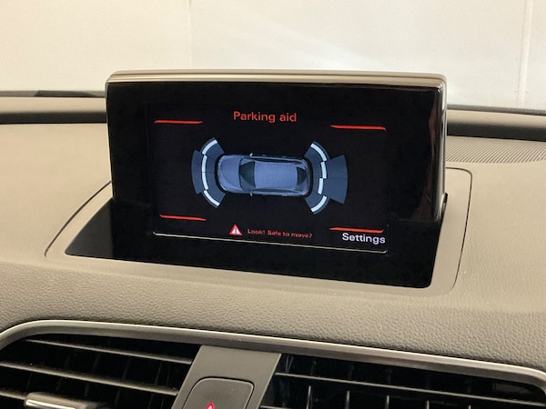 ..6.5'' colour display screen, Audi drive select, Cruise control, Electro-mechanical PAS, Low washer fluid indicator, MMI - Multi Media Interface control system, On board computer, Remote electric boot opening/closing, Service interval indicator, Voice control system, Sports suspension, Audi music interface, BOSE sound system, DAB digital radio module, Acoustic windscreen, Aluminium window surround, Auto dimming rear view mirror, Black exhaust tailpipes, Black high gloss door mirrors, Black roof rails, Coming home function, Door mirror integrated indicators, Front and rear electric windows, Front fog lights, Front lip spoiler, Heated windscreen washer jets, High Gloss Black Contrast Bumpers, High Gloss Black rear spoiler, LED daytime running lights, LED headlights with headlight washers, LED rear lights, Light and rain sensor for auto activation of lights and windscreen wipers, Loading sill protector in stainless steel, Privacy glass, Rear diffuser with platinum insert, Rear wiper, S Line body styling, Sunband for windscreen, 12V socket in rear centre console, 3 spoke flat bottom multi-function perforated leather steering wheel with contrast stitching and aluminium gearshift paddles, Aluminium door sill trims, Aluminium gear knob, Black cloth headlining, Door sill trim strips, Dual zone climate control, Electric front lumbar adjustment, Front and rear headrests, Front and rear velour floor mats, Front centre armrest with storage compartment and angle adjustment, Front sports seats, Height/reach adjust steering wheel, ISOFIX on front passenger and rear outer seats, Jack and tool kit, Retractable luggage cover, Reversible boot floor, Split fold rear seat, Stainless steel pedals, Storage compartment and 12V socket, Under floor storage in luggage area, Audi Exclusive black styling pack - Q3, LED interior light pack - Q3, 3x3 point rear seatbelts, ABS+Electronic Brake force Distribution, Curtain airbags, Driver and passenger airbags, Driver and passenger side airbags, EDL + ASR, Electrically operated child locks on rear doors, Electromechanical parking brake, ESP, First aid kit, Front passenger airbag deactivation, Head airbags, Seatbelt warning light, Tyre pressure monitoring system, Warning triangle, Locking wheel bolts, Remote central locking, Thatcham category 1 alarm + immobiliser, Piano black finish inlay