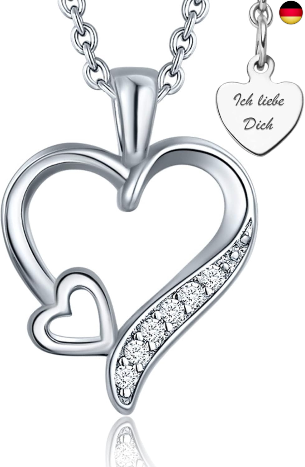Herzkette Silber 925 / Gold vergoldet Halskette Damen *Ich Liebe Dich* Kette Silberkette mit Herzanhänger Schmuck nickelfrei Geschenke für Frauen Freundin Sie zum Geburtstag Hochzeitstag Jahrestag