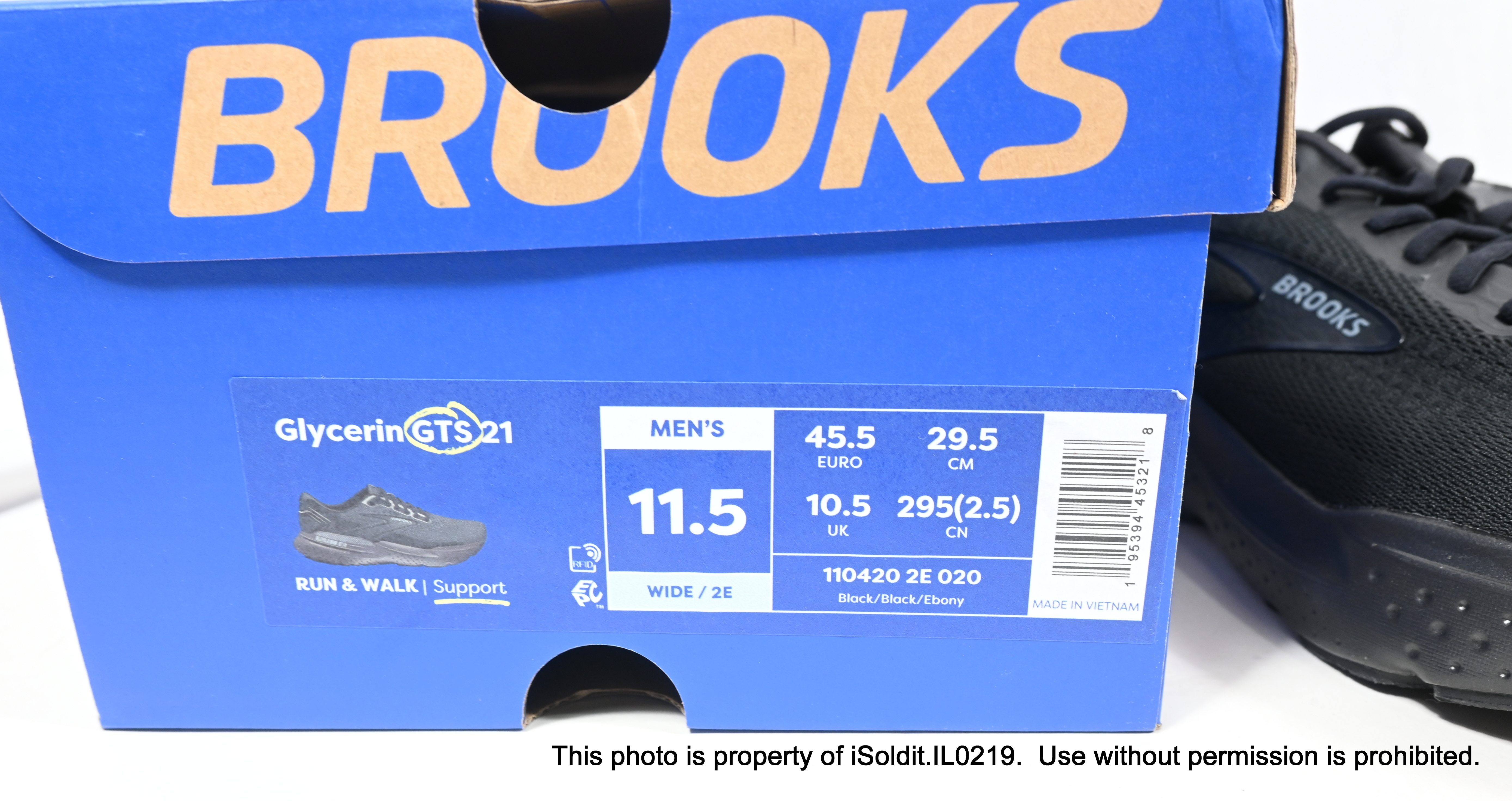 For sale here is a pair of MENS BROOKS ATHLETIC SHOES. NEW IN BOX! Black. Size US 11.5 EE, insoles measure 11.25". Shoes feature Glycerin GTS. Comfortable. Thank you for your interest!