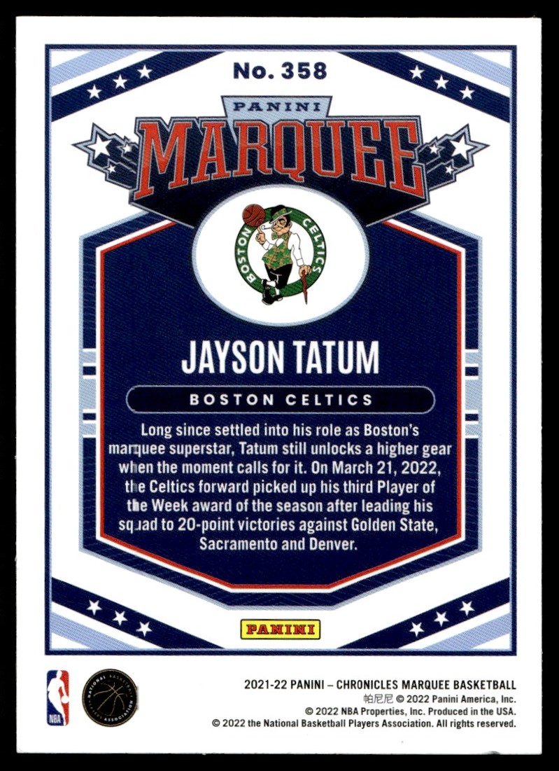 2021-22 Panini Chronicles Green Jayson Tatum Boston Celtics #358