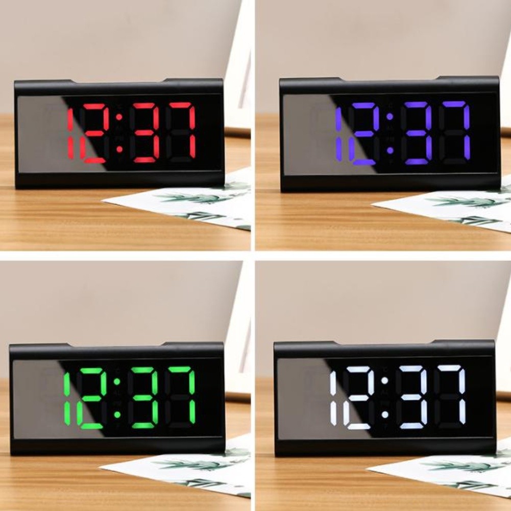 Réveil Miroir LED avec Affichage Numérique Calendrier Température Alimenté p
