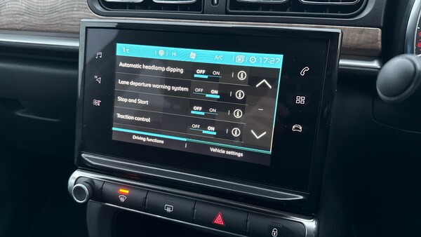 1 USB Connection12V SocketCitroen Connect Box with Emergency and Assistance SystemCitroen Connect NavCoffee Break AlertCruise Control with Speed LimiterLane Departure Warning SystemMulti-Function On-Board Trip ComputerRear Parking SensorsReversing CameraTyre Pressure Monitoring System17in Alloy Wheels - Vector - Diamond Cut3D Rear Lights SignatureAirbump on Side Door PanelBlack Colour PackBody Colour Door HandlesBody Colour Front and Rear BumpersChrome Decoration on Front Face - Under Chevrons and around Daytime Running LightsCitroen Illuminated Signature in LED Headlights and LED Daytime Running LightsDark Tinted - Rear Side and Tailgate WindowsElectrically Adjustable - Heated Folding Door MirrorsFront Sequential Electric Windows with One-Touch - Open-Close and Anti Pinch SystemGloss Black B PillarsPuncture Repair KitRear Sequential Electric Windows with One-Touch - Open-Close and Anti Pinch SystemRoof - Bi-Tone - Perla Nera BlackRoof-Colour Rear View Mirror CapsVisibility PackFog Lights Integrated into the Front BumperLED Headlights2-3 - 1-3 Split Folding Rear BenchArmrest - Drivers CentralAuto-Dimming Electrochrome Rear View MirrorAutomatic Air ConditioningBoot LightDrivers and Passengers Sunvisor with Courtesy Mirror - Non IlluminatedFront Head Restraint with Height AdjustmentFront Lighting Panel with Map Reading LightsFront Seats Adjustable with Forward-Back Slide and Adjustable BackrestHeight Adjustable Drivers SeatHeight and Reach Adjustable Steering WheelInstrument Cluster with White LCD and Analogue Gauges - with Satin Chrome SurroundLeather Steering Wheel with Gloss Black and Satin Chrome Elements and Audio-Telephone ControlsLeather Trimmed Gear Lever with Leather-Effect Gaiter and OverstitchingManual Parking Brake with Leather Handle and Chrome Finish ButtonMap Pockets in Back of Driver and Front Passenger SeatsParcel ShelfRear Windscreen Wiper with Intermittent Mode Linked to Vehicle Speed and Automatic Activation when Reverse Gear SelectedStorage Space Under Touchscreen with Rubber MatTechWood AmbienceThree Rear Seats with HeadrestsUpholstered Armrest in Front and Rear DoorsPower Assisted SteeringABS - Anti-Lock Braking SystemAirbags - DriverAnti-Theft AlarmAutomatic Activation of Hazard Warning Lights in Case of Severe DecelerationAutomatic Door and Boot Locking when in MotionCentral Locking with Locked Indicators and Interior One-Touch Lock ButtonDriver and Front Seatbelts with