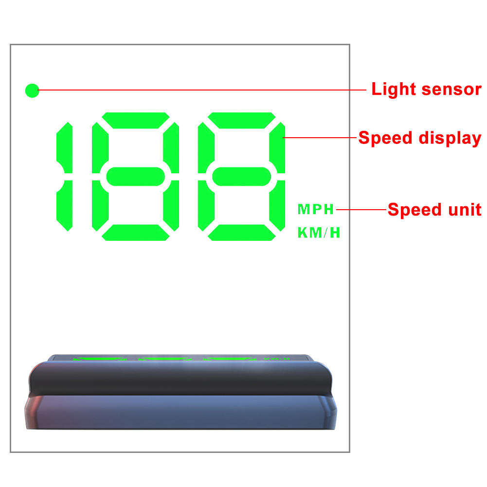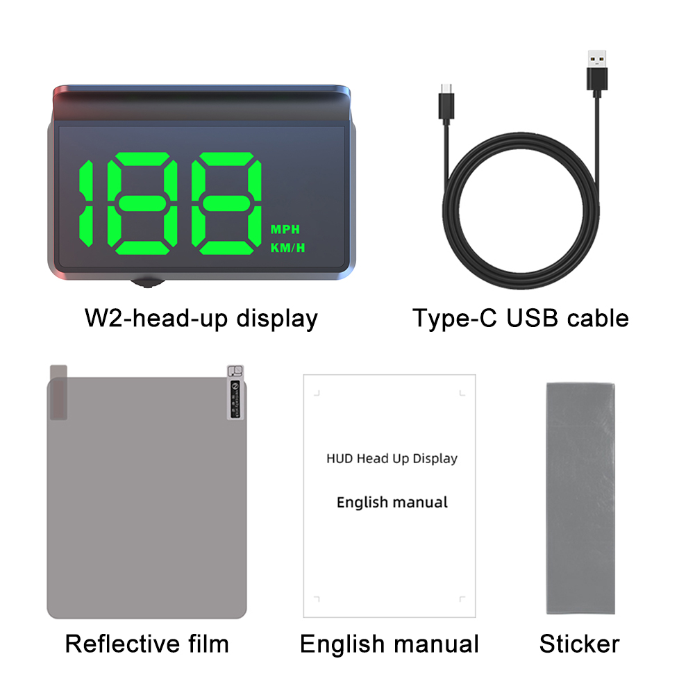 Car Head Up HD Display W2 GPS Speedometer Windshield Projector Features: 1. After connecting to the power supply, car head up display can work directly without any other operations. No skip speed, more coherent and smooth display. 2. W2 display speed MPH this unit. The screen projects large fonts to make the HUD display clearer, placing a mini W2 HUD in the car will surely add a lot of fun. 3. The product has a built-in advanced light-sensitive element that changes according to the brightness. Fully automatic light sensitivity, clear enough in the daytime, not blinding at night. 4. W2 is a GPS mode head up display for car. Unlike most of the head up displays on the market, our designers have taken full advantage of the windshield's characteristics to design a simple white windshield HUD. 5. The screen design of W2 is very simple, the data projected onto the windshield is minimalistic and does not block the driver's view. Therefore, we designed it as a very simple speedometer, presenting only the most important speed data to the driver at a glance. Specification: Condition: Brand New (Never Been Used or Installed) Material: High Quality ABS+PC Color: Green Light Fitment Type: Performance/Custom Placement on Vehicle: Front Voltage: USB 5V Model: W2 Fitment: W2 is a GPS mode head up display for car. Suitable for all car models, such as new energy vehicles, gas-electri hybrid vehicle, fuel car, bus, truck, etc. Please kindly check our item description, sizes and photos, make sure this item fit for your car. Packing Included: 1 Pcs HUD 1 Pcs Refective Film 1 Pcs USB 1 Pcs Manual 1 Pcs Double Sided Tape Notes: 1. No installation instruction included, professional installation is highly recommended. 2. The operating voltage of this product is 5V, and a voltage higher than 5V is prohibited. 3. There may be slight size deviations due to manual measurement, different measuring methods and tools. 4. The real color of the item may be slightly different from the pictures shown on website caused by many factors such as brightness of your monitor and light brightness. 5. Fitted photos just for your reference, which to show the installation effect and show you which model car can be installed, the actual product is same as the detail photos, please also check the other photos carefully. 6. This device is a GPS digital speedometer, and the speed is collected from satellites. So if you test at home or a parking lot, perhaps the speed cannot be displayed correctly. Please conduct the test outside the vehicle with good signal.