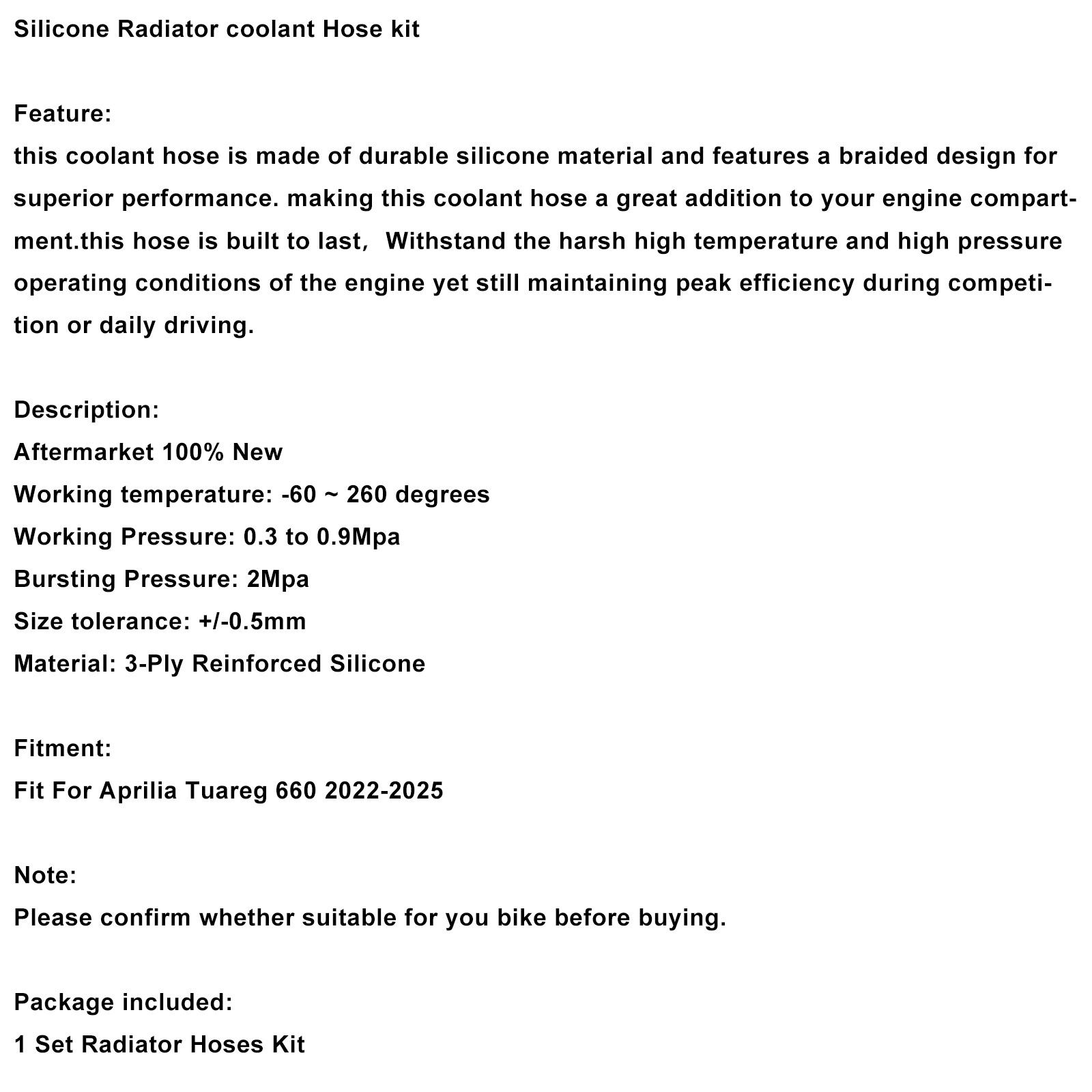 Silicone Radiator coolant Hose Fit For Aprilia Tuareg 660 2022-2025 White