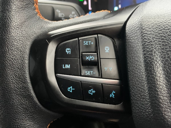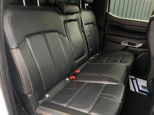 Child proof rear door locks, ISOFIX child safety seat attachment, Tyre pressure sensors, AEB and ISA, Electric power assisted steering, Electronic automatic gearshift, Evasion steer assist, Ford pass connect embedded modem, Ford Pro Telematics Essentials, Ice warning, Partial TFT/LCD instrument cluster, Passenger side roof mounted grab handle, Pre collision assist, Road departure warning, Trip computer, 360 lighting, Accent colour exterior mirrors, Accent colour front bumper, Accent colour grille, Accent colour rear bumper, Acoustic laminated windscreen, Assisted conventional tailgate, Automatic headlights, Black wheel lip moulding, Body coloured door handles, Daytime running lights, Dual power heated fold back door mirror with puddle lamps, E-marked glass, Electric rear window defroster, Electric windshield defroster, Electrochromic interior mirror, Foam in bumper, Fog lamp bezel, Front bumper lip, Front fender painted grill, Front headlamp leveling, Front splash guard, Front towing hooks, High mounted stop lamp, Integrated rear bumper step, Ladder rack, LED Front fog lamp, Level 1 Taillamps, Level 2 Headlamps, Manual liftgate, Narrow bodyside moulding, Non locking capless fuel fill, Outside thermometer, Pickup side rails, Plastic cab roll over bar, Power front windows with one touch up/down, Power rear windows, Privacy glass, Rain sensitive windshield wipers, Rear bumper extension, Rear fog lamps, Rear splash guard, Roof rails, Self coloured decklid handles, Solid paint, Trailer tow class I, Trailer tow wiring, Under hood engine cover, Cargo light, Console with armrest, Door handles with inside MIC, Driver and passenger sunvisor with mirror, Ebony headliner, Electronic dual zone automatic air conditioning, Fresh air heater, Glove box lids, Heated steering wheel, LED ambient interior lighting, Less load box bedliner, Less load rest, Less outside tie down hooks, Load box bedliner, Micro rib embossed leather upholstery, Non woven carpet, Overhead console with dome lamps, Pollen filter, Premium air register, Premium front and rear floor mats, Pull out cup holder, Reach and rake adjustable steering column, Rear floor ducts, Roof storage for driver sunglasses, Steering wheel with multimedia controls, Tie down rails and rope hooks, Washer tank level warn lamp, Body protection pack 2 - Ranger, Driver assistance package - Ranger, Front seat pack 7 - Ranger, Functional upgrade pack 3 - Ranger, Heavy duty terrain pack - Ranger, ICE feature pack 102 - Ranger,