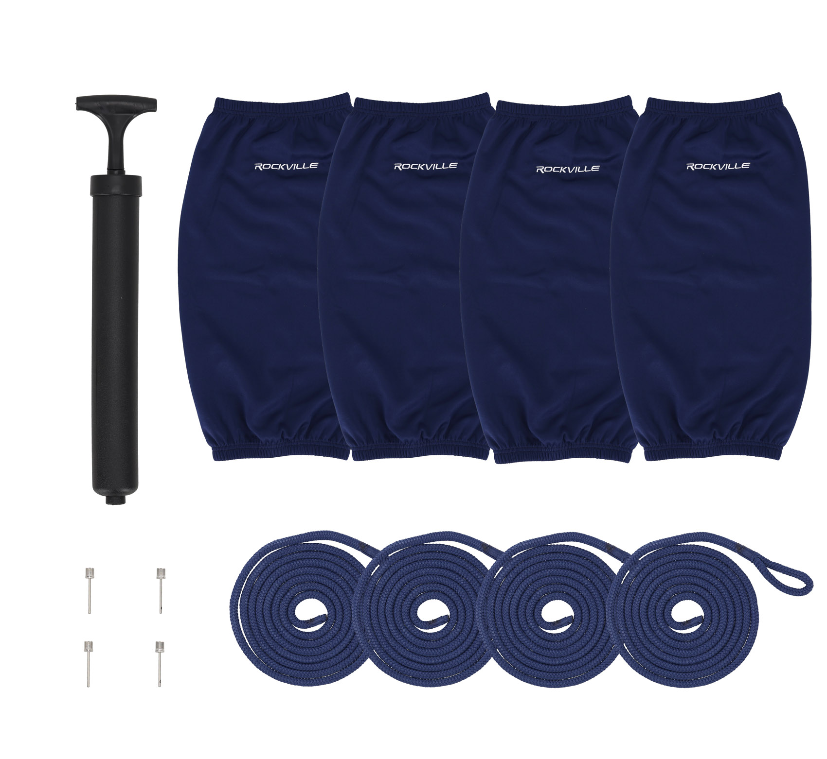 Rockville FEN485-NAVY BLUE (4) 8.5" Boat Fenders 4 Covers, 4 Lines Package