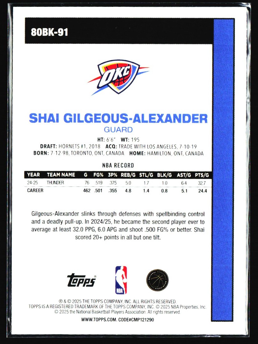 2025-26 45th Anniversary Shai Gilgeous-Alexander Oklahoma City Thunder #80BK-91