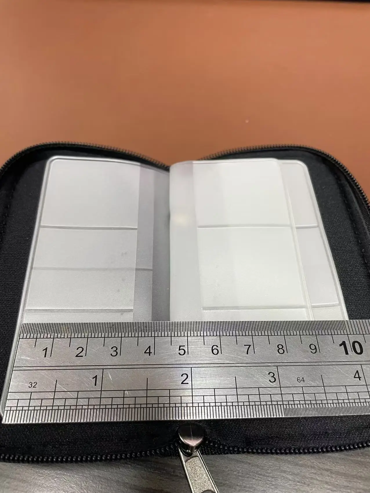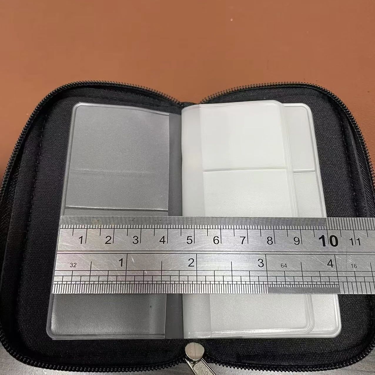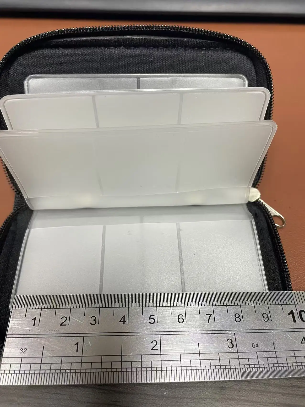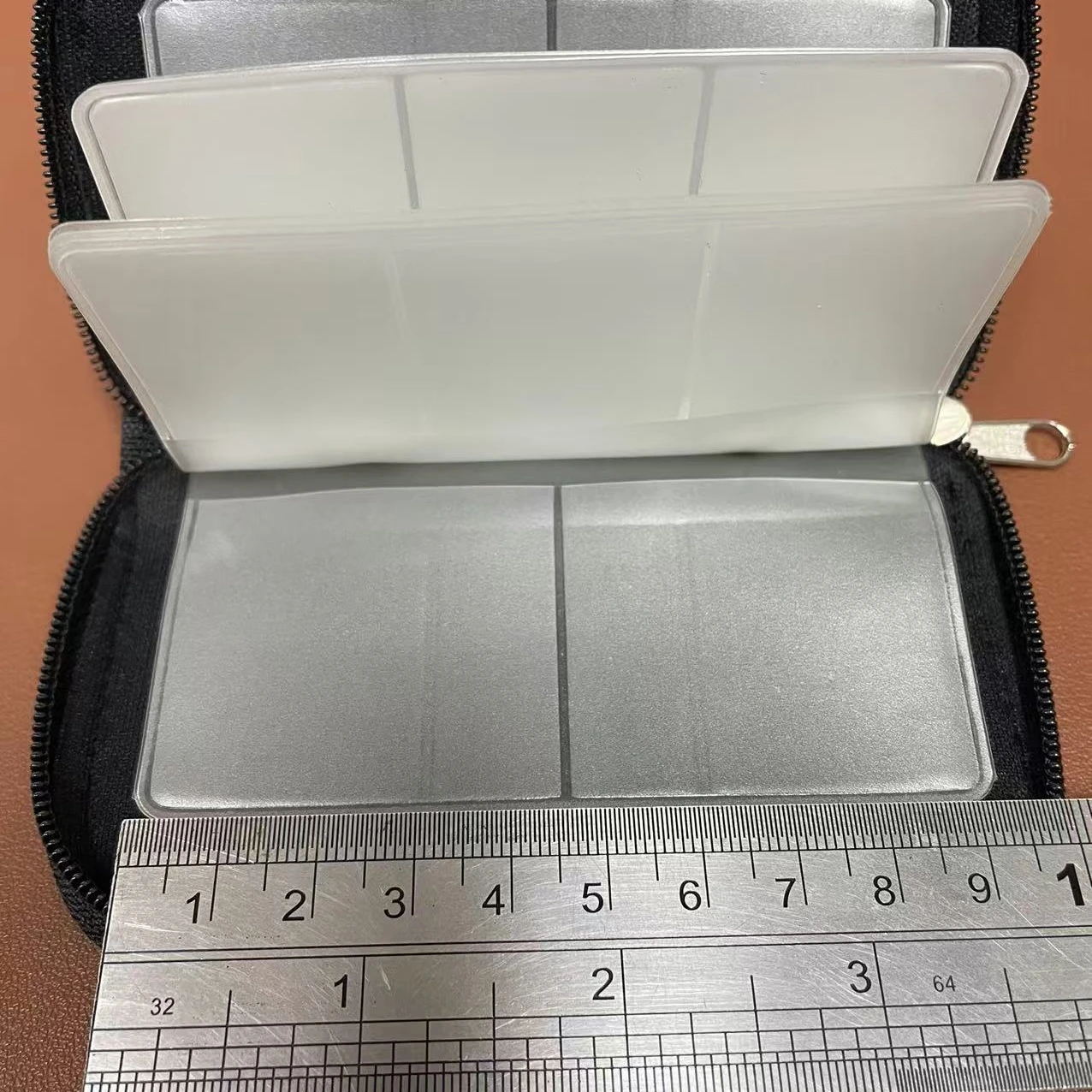 【22 SLOTS】 Each SD Card Holder has 8 pages, 22 slots in total. The small slots hold cards up to 24mm wide and the 4 large slots hold cards up to 43mm wide. Small card slot size: 33mm * 30mm, large card slot size: 45mm * 40mm