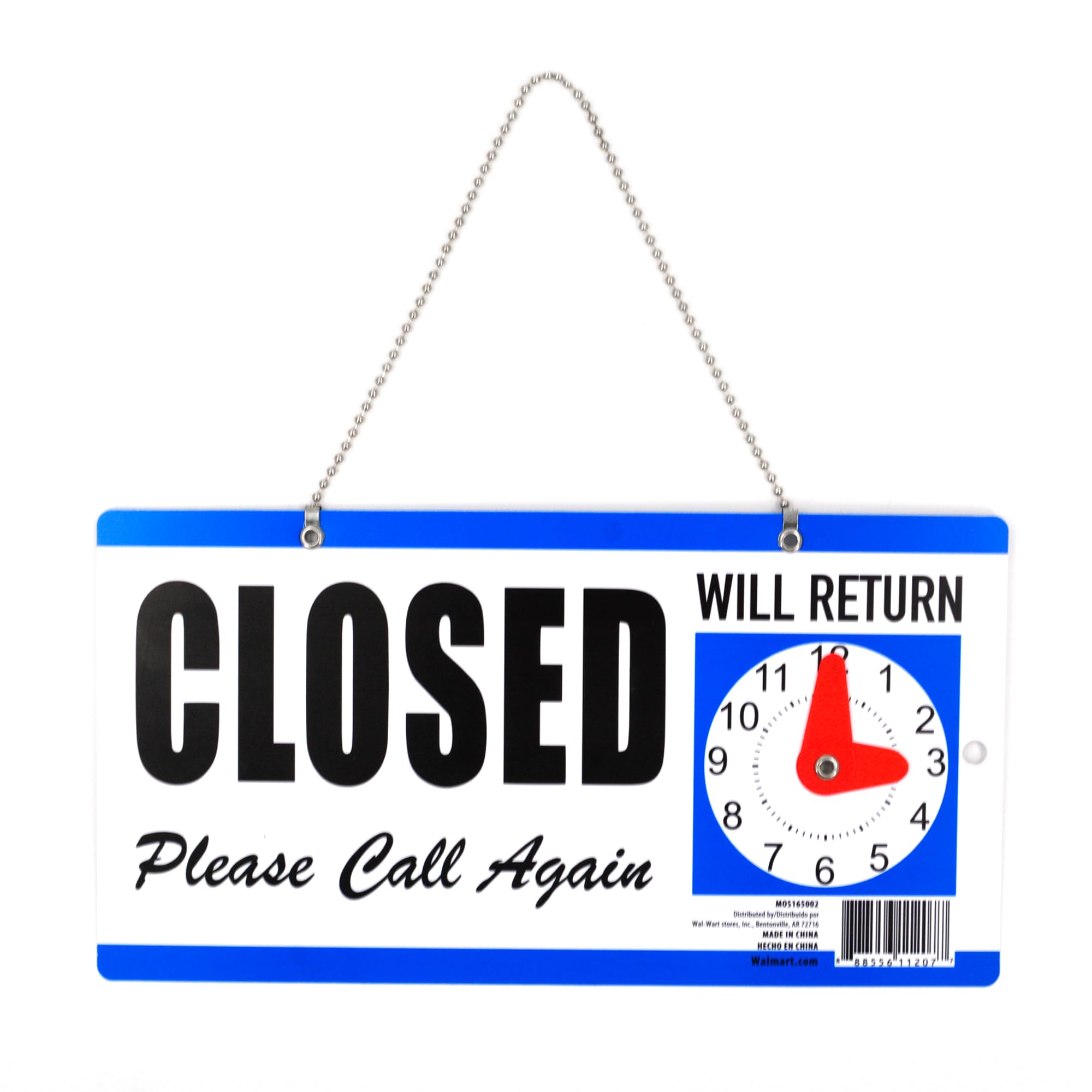 Closed Sign for Business - Double-Sided with Clock, 11.5 x 6 inches, White
