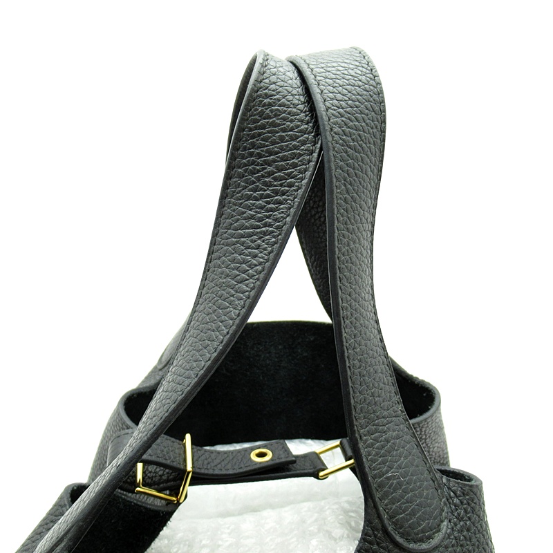 | Slight signs of use. Gold metal. There are small scratches on the metal. There is some fluffing and small stains inside. C stamp (made in 2018). |