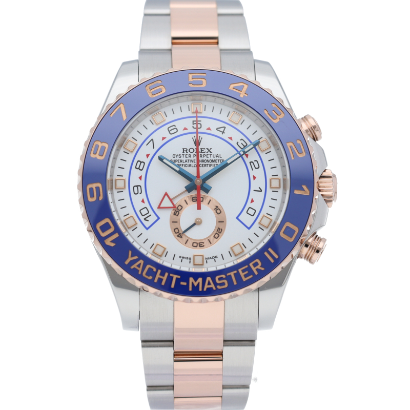 | "Yacht Master 2" specialized for yacht racing competitions. In addition to the lock & release function, synchronization function, and programmable countdown function, the "programmable chronograph" equipped with a countdown chrono up to 10 minutes is adopted. It is a complication watch full of practicality and luxury unique to Rolex. The compatibility with the latest pink gold combination is also excellent. |