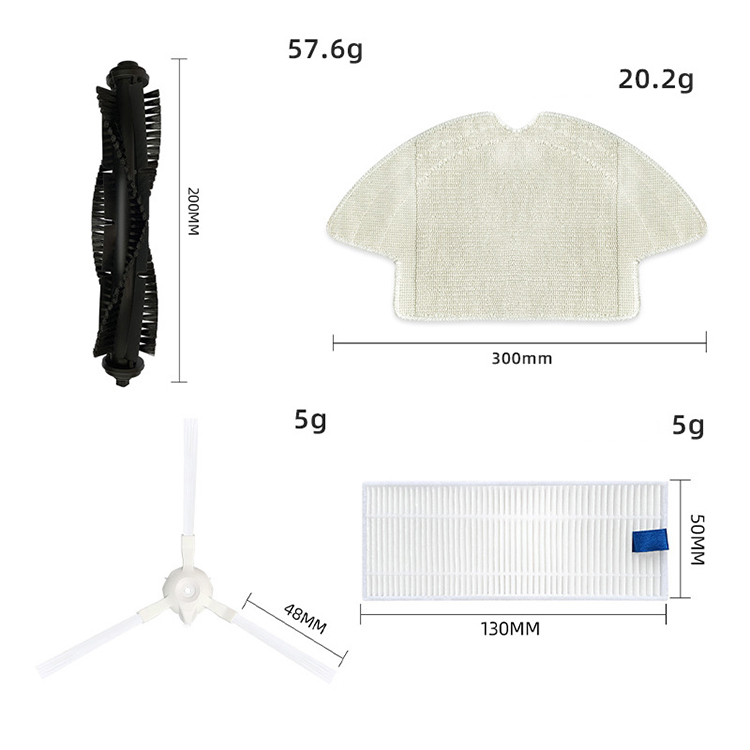 1x Main Brush+2x Side Brushes+2x Filters+2x Mop Cloth