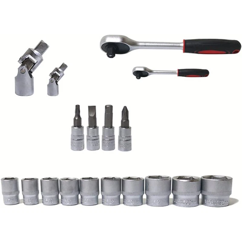 17PCS - 1/2 DR SOCKET: 10, 11, 12, 13, 14, 15, 16, 17, 18, 19, 20, 21, 22, 24, 27, 30, 32mm