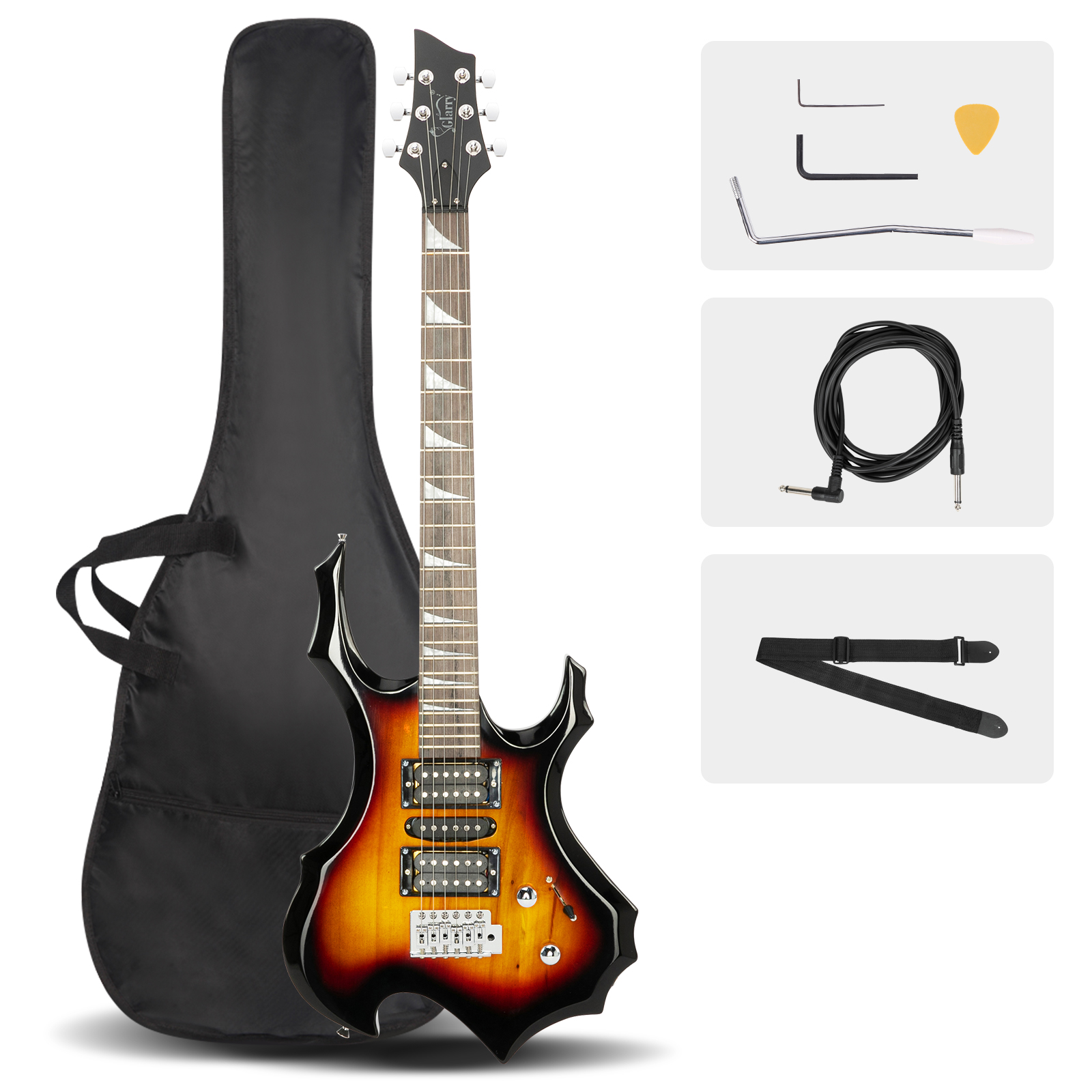 Looking for a high-performance electric guitar? Then take a closer look at our Glarry Flame Electric Guitar HSH Pickup Shaped Electric Guitar Pack Strap Picks Shake Cable Wrench Tool! Featuring great sound and ease of playability, it is an ideal choice for beginners as well as Professional level. It uses the humbucker-single-humbucker pickup, can adapt to a variety of music style, has its 5 pickup adjustment. High-tensile strength fretwire ensures durability and smooth playability. What are you hesitating for? Bring it home right now!