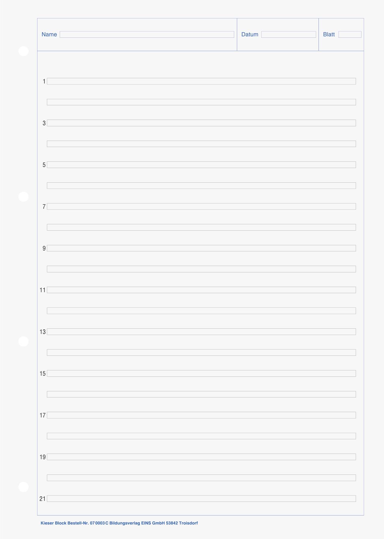 - Ausführung der Lineatur: Schullineatur 3