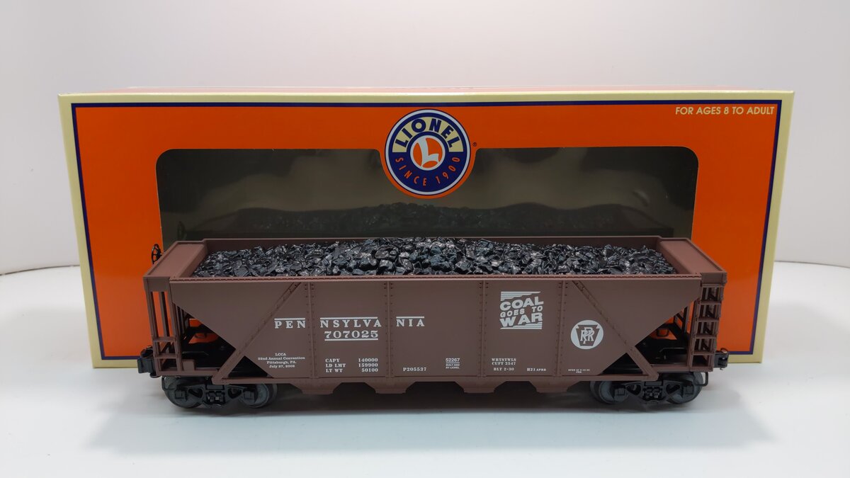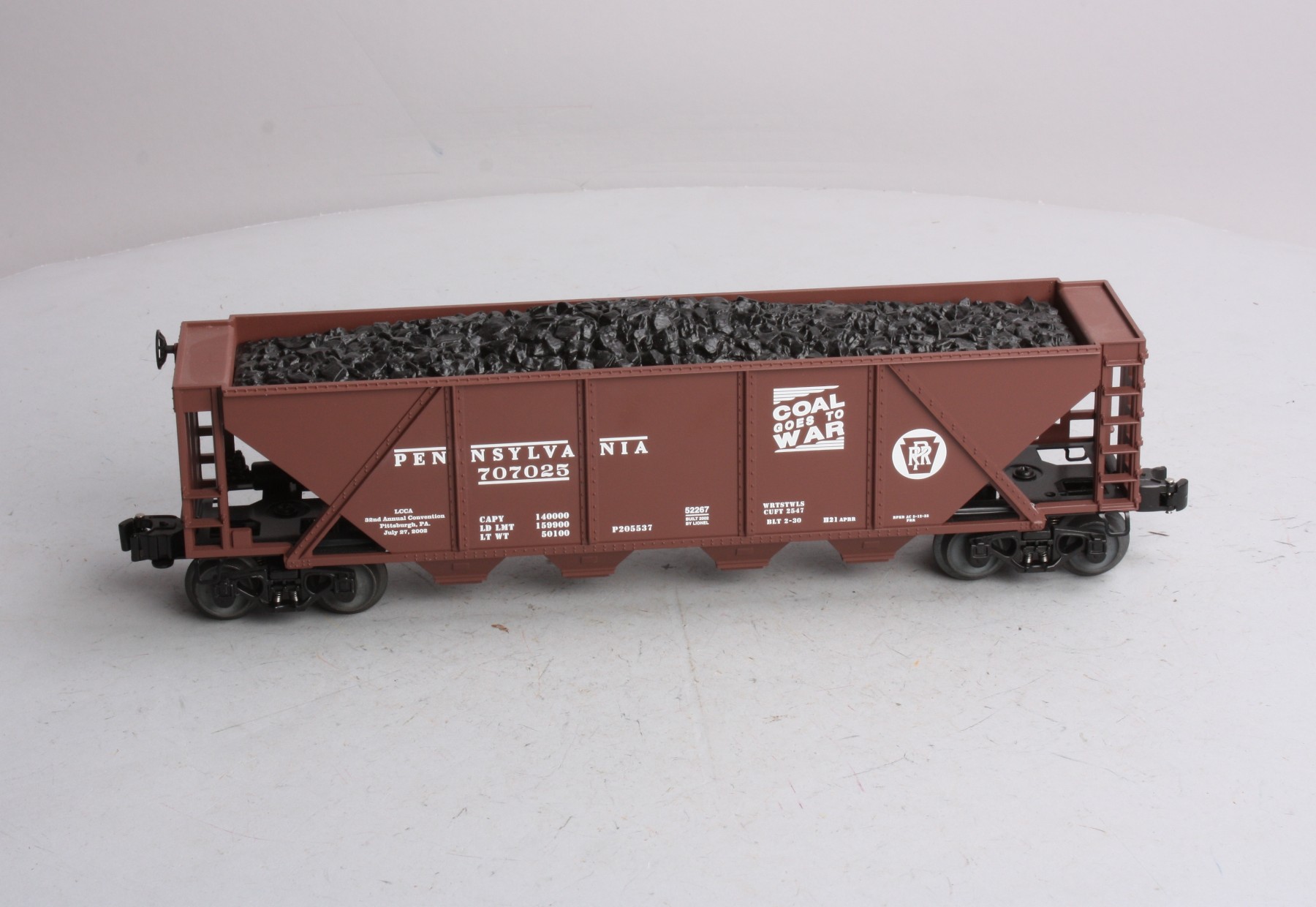 Here is a Lionel 6-52267 O 2002 LCCA Convention Pittsburgh, PA 4-Bay Hopper Car. It features die cast sprung trucks and operating couplers, metal wheels and axles.