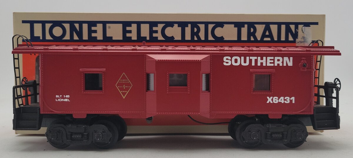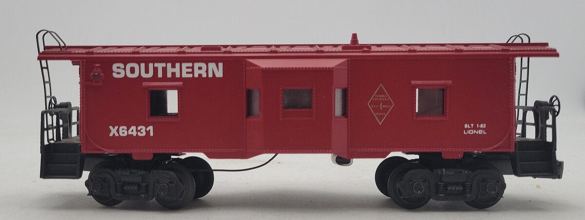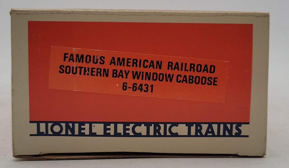 Here is a Lionel 6-6431 O Southern "Famous American Railroad" Bay Window Caboose #X6431. This car features interior illumination, die-cast metal trucks, operating knuckle couplers, metal wheels and axles.