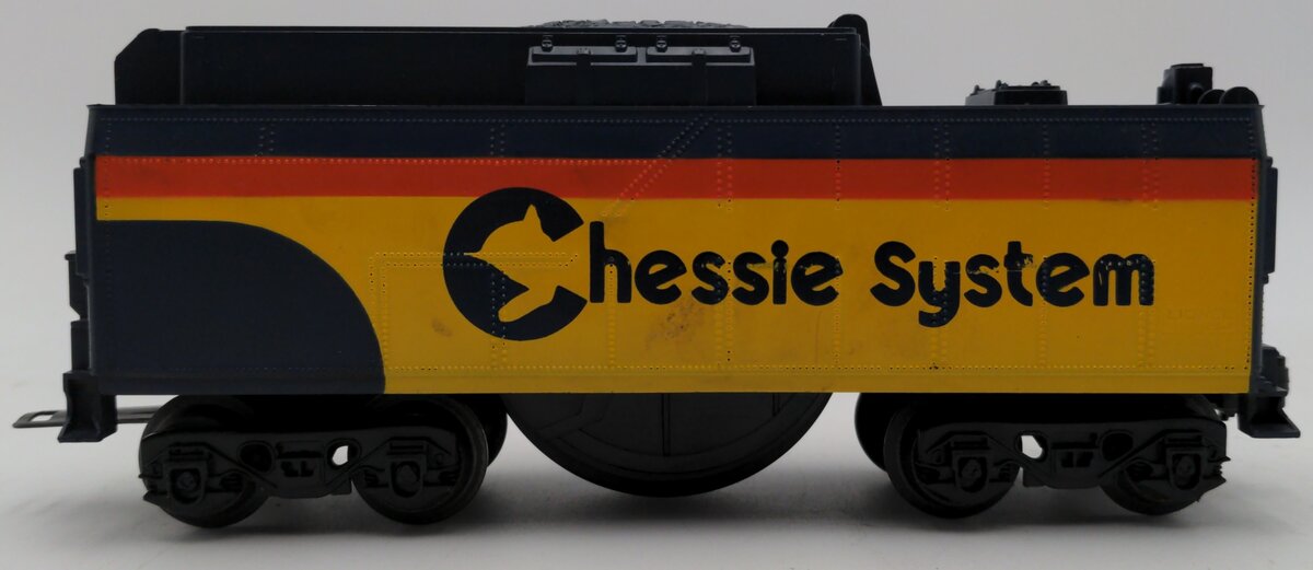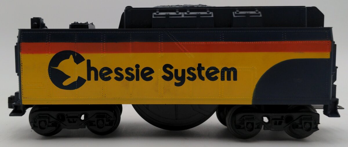 Here is a Lionel 6-8008 O Gauge 4-4-2 Chessie System Tender. The tender features plastic construction with plastic trucks, fixed plastic knuckle couplers, metal wheels and axles. This does not include the locomotive.