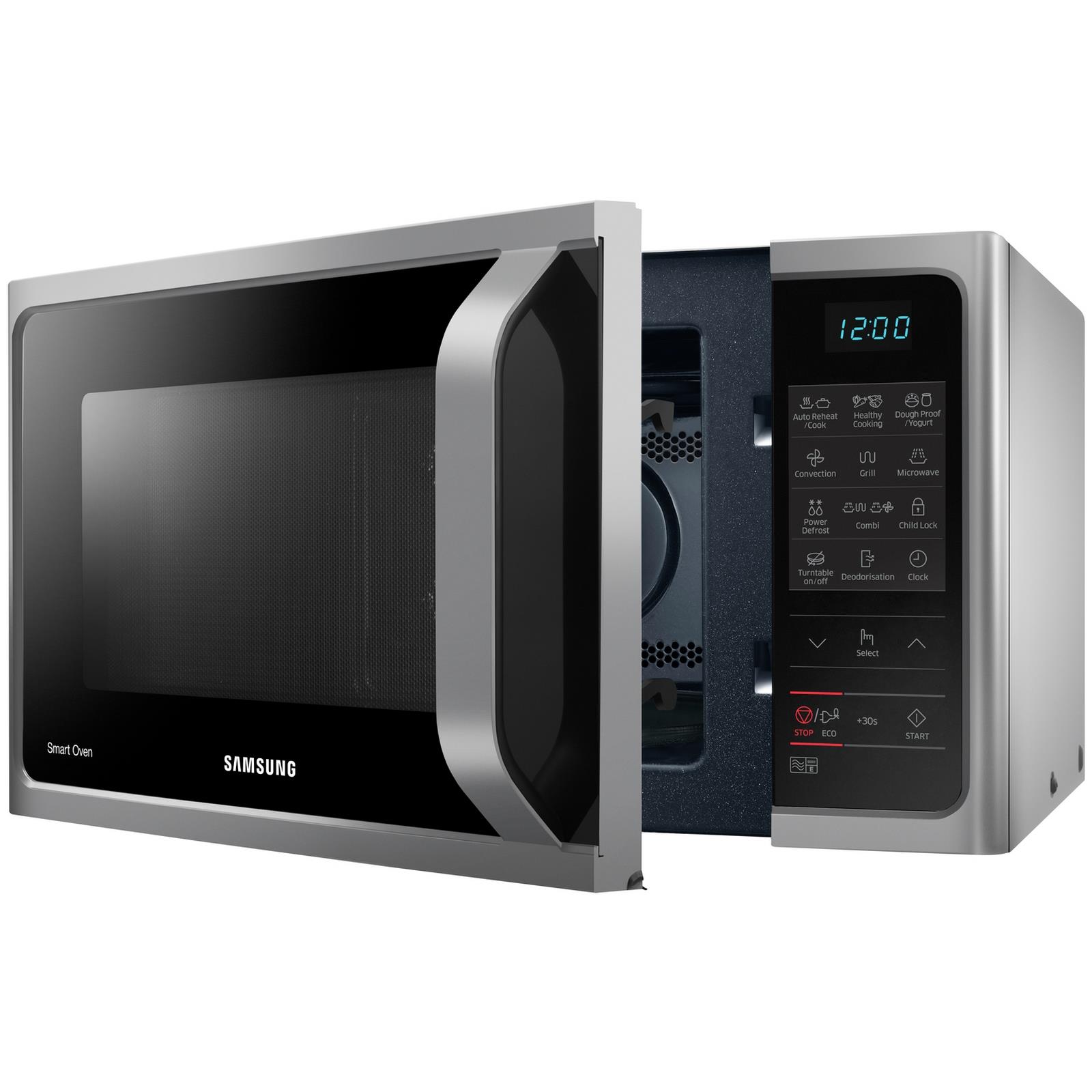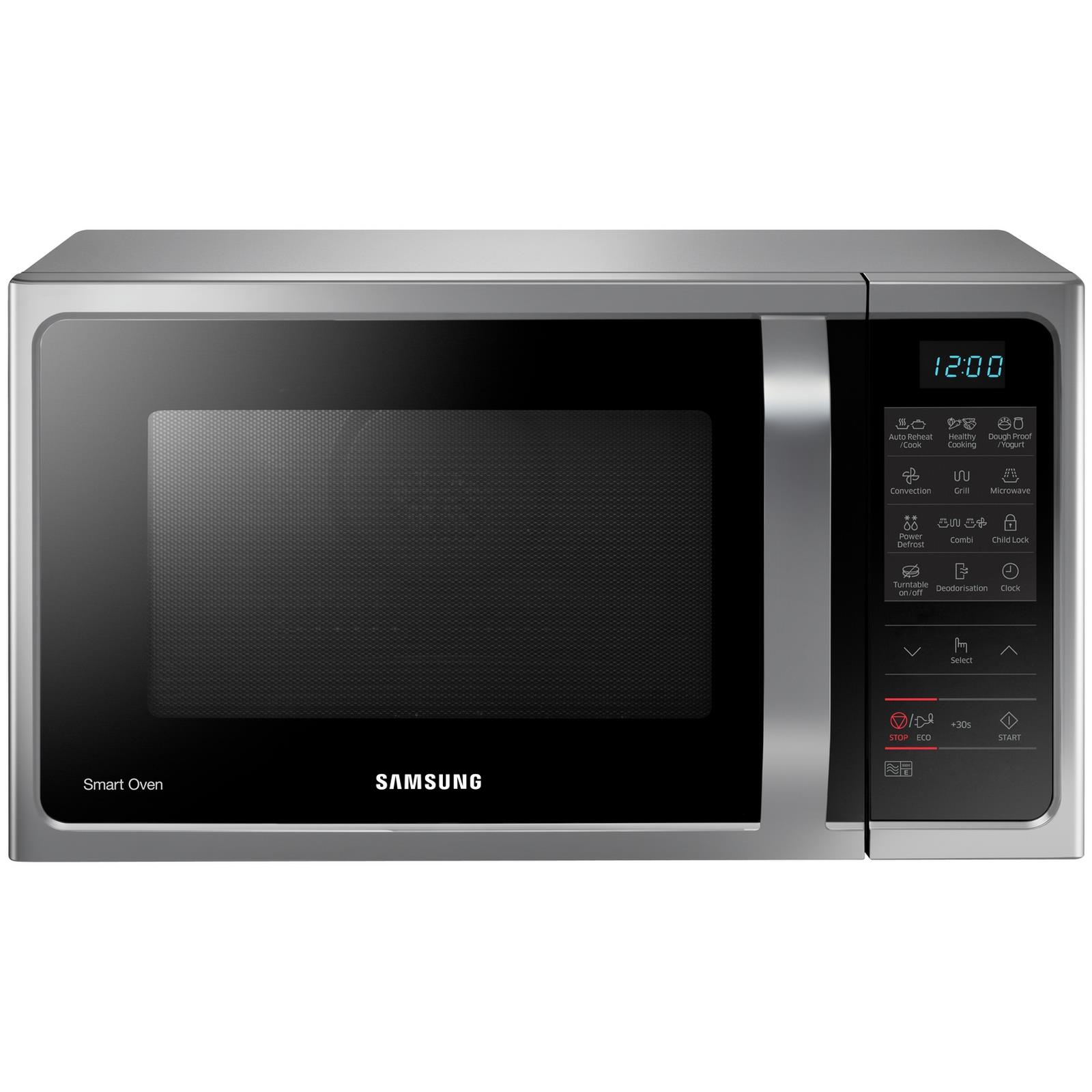 The Samsung MC28H5013AS Combination Microwave is a powerful multi-function appliance offering microwave, grill, and convection oven cooking in one unit. Ideal for family meals, it allows you to bake, roast, grill, steam, and even ferment yoghurt or bread dough.